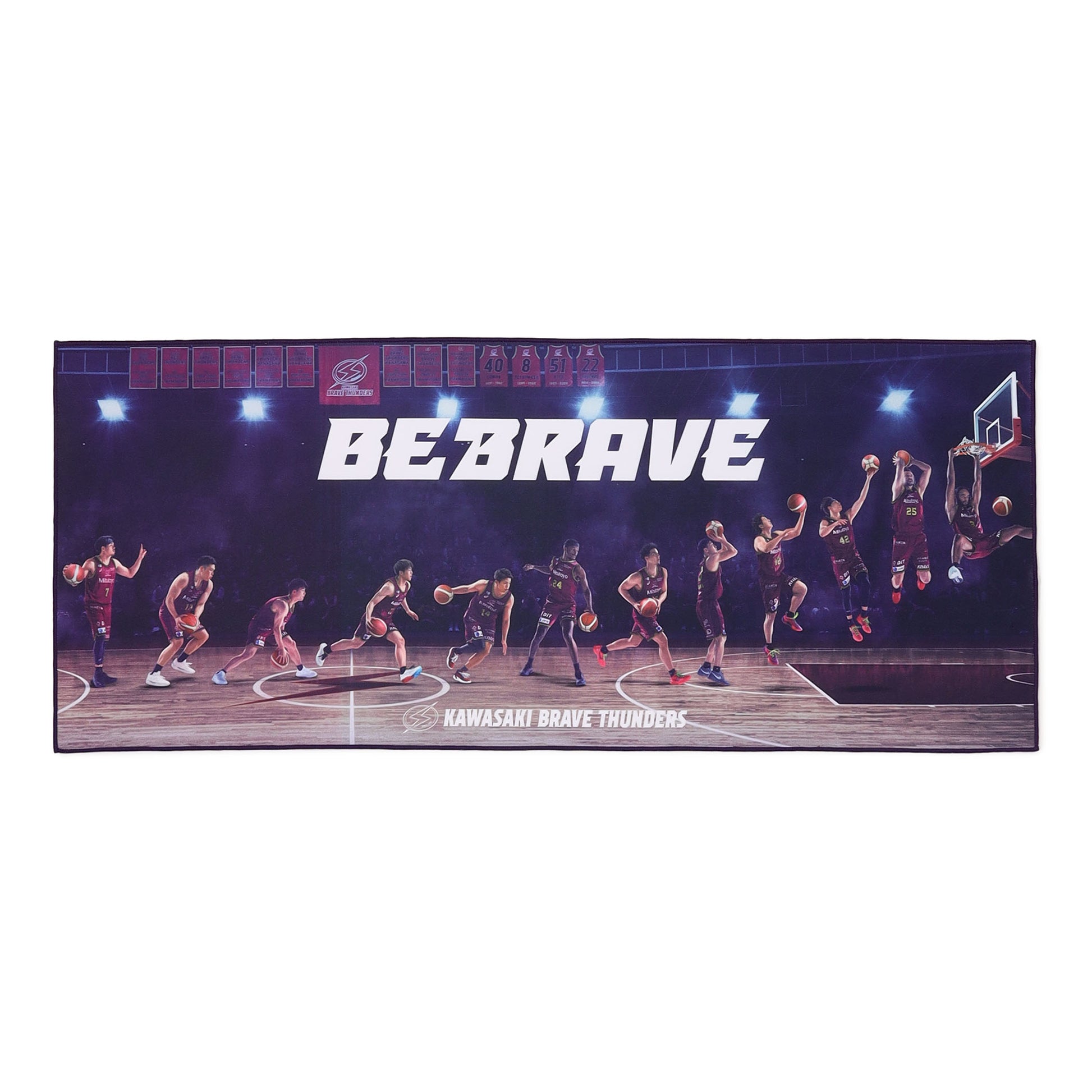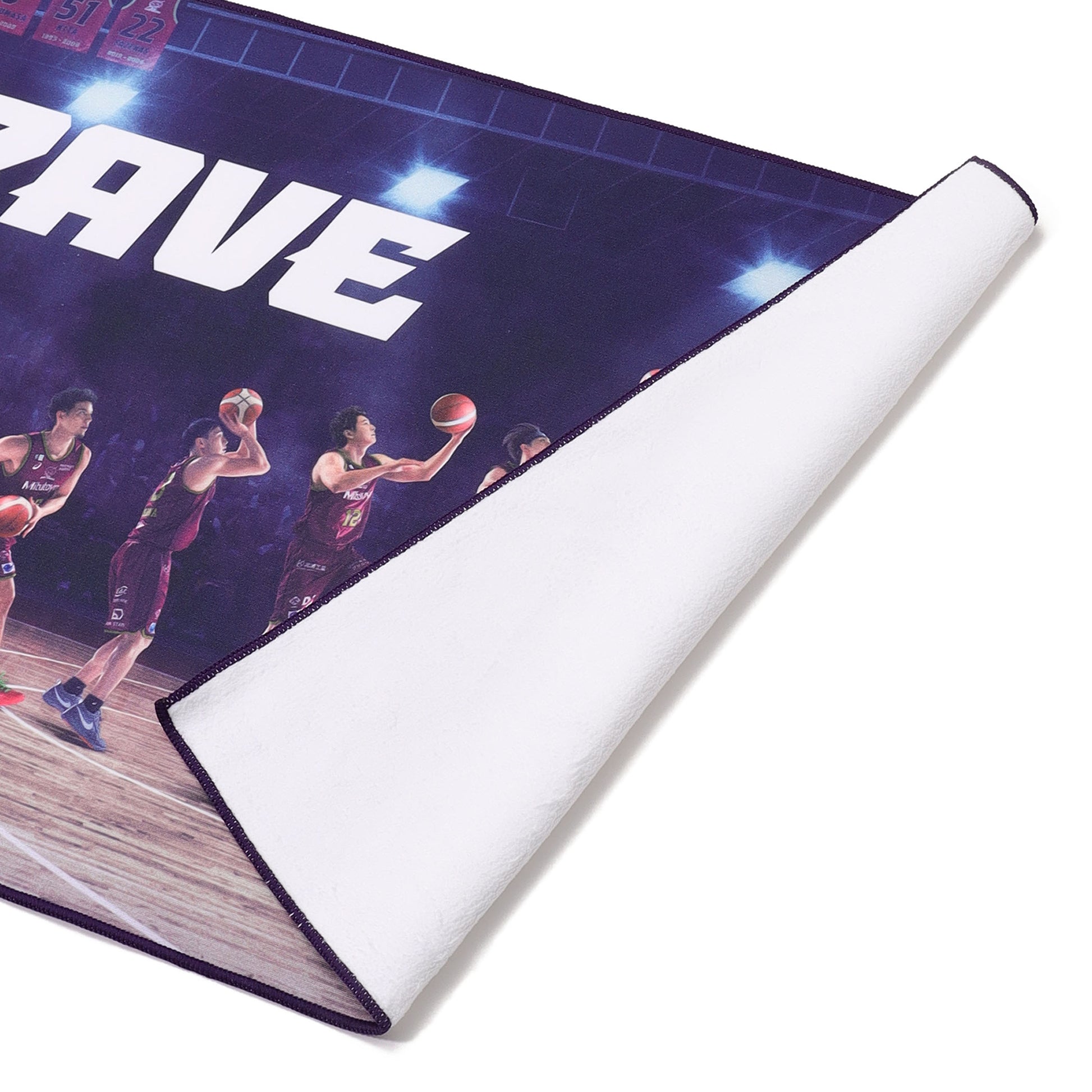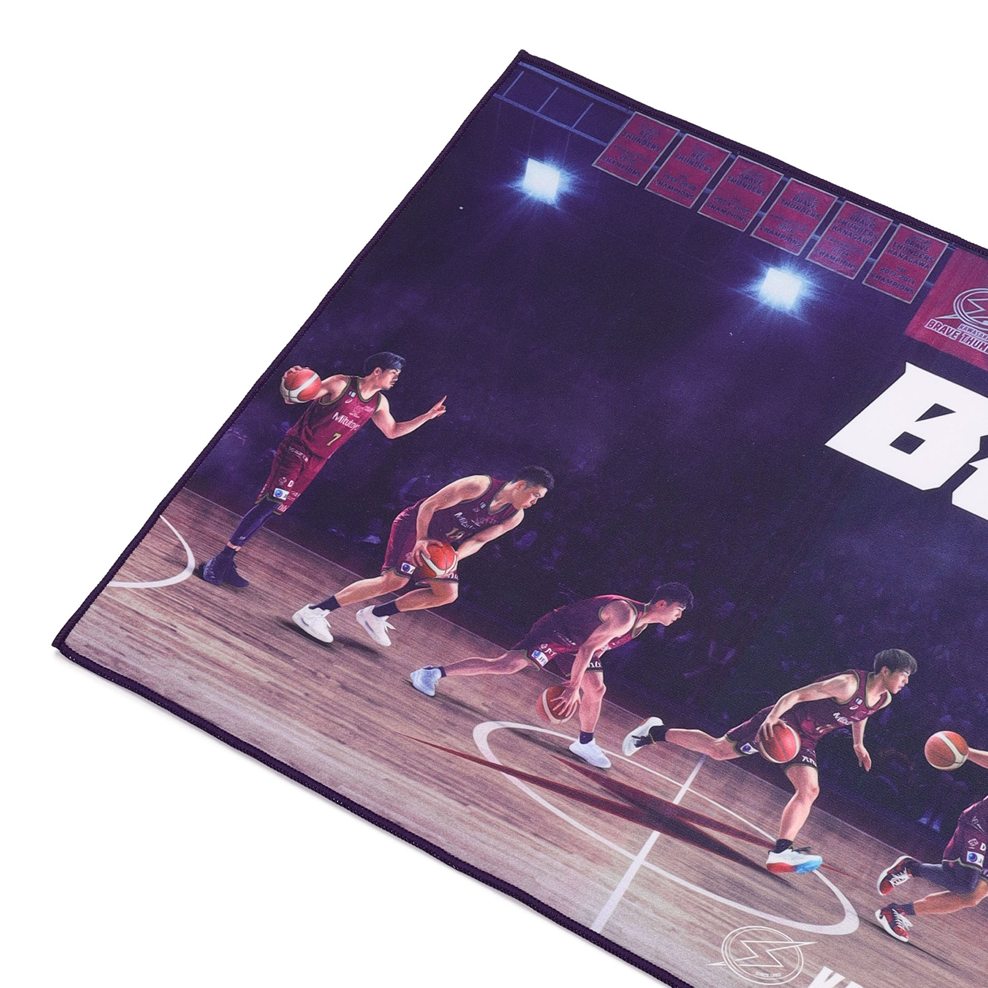 スタイリッシュなデザインに魅せられるキービジュアルタオル。ドリブルからダンクシュートを決めるまでの流れを、ブレイブサンダーズの選手たち一人ひとりでコマ送りのように表現した、センスあふれる一枚です。使い勝手の良いフェイスタオルは、観戦時のお供にも、スポーツシーンにもぴったり。持っているだけで心強いアイテム。