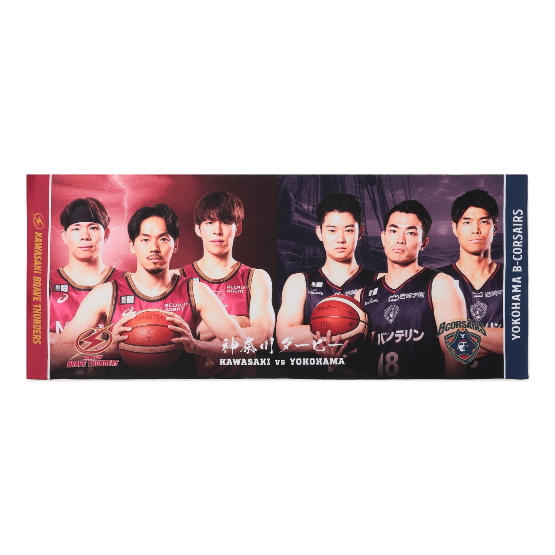 川崎ブレイブサンダースと横浜ビー・コルセアーズの2クラブがコラボレーションして開催している「神奈川ダービー」。今シーズン注目の両クラブ選手が大きく配置されたスペシャルなフェイスタオルがあれば、両クラブのファン・ブースターが一体に。