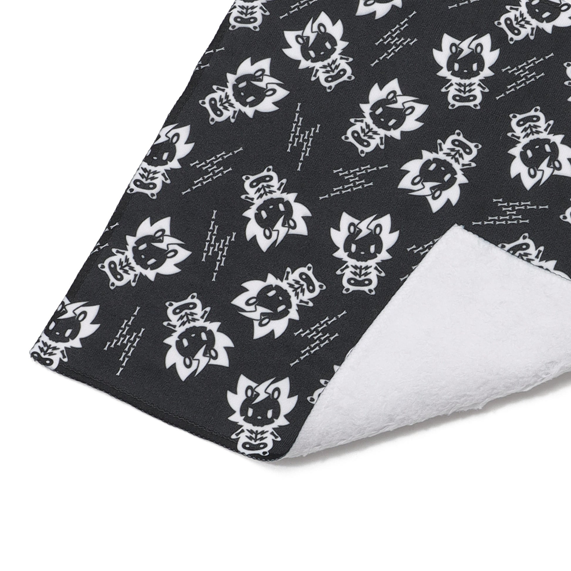 ”ハロウィン”をテーマにしたHONEのロウルシリーズ。マスコットと稲妻に見立てたHONEをランダムに配置したグラフィックのハンドタオル。シックなモノトーンに抑えているため、モダンな大人の雰囲気をたたえています。日常使いにぴったりのタオルは、ちょっとした気持ちを表すギフトにも最適なアイテムです。