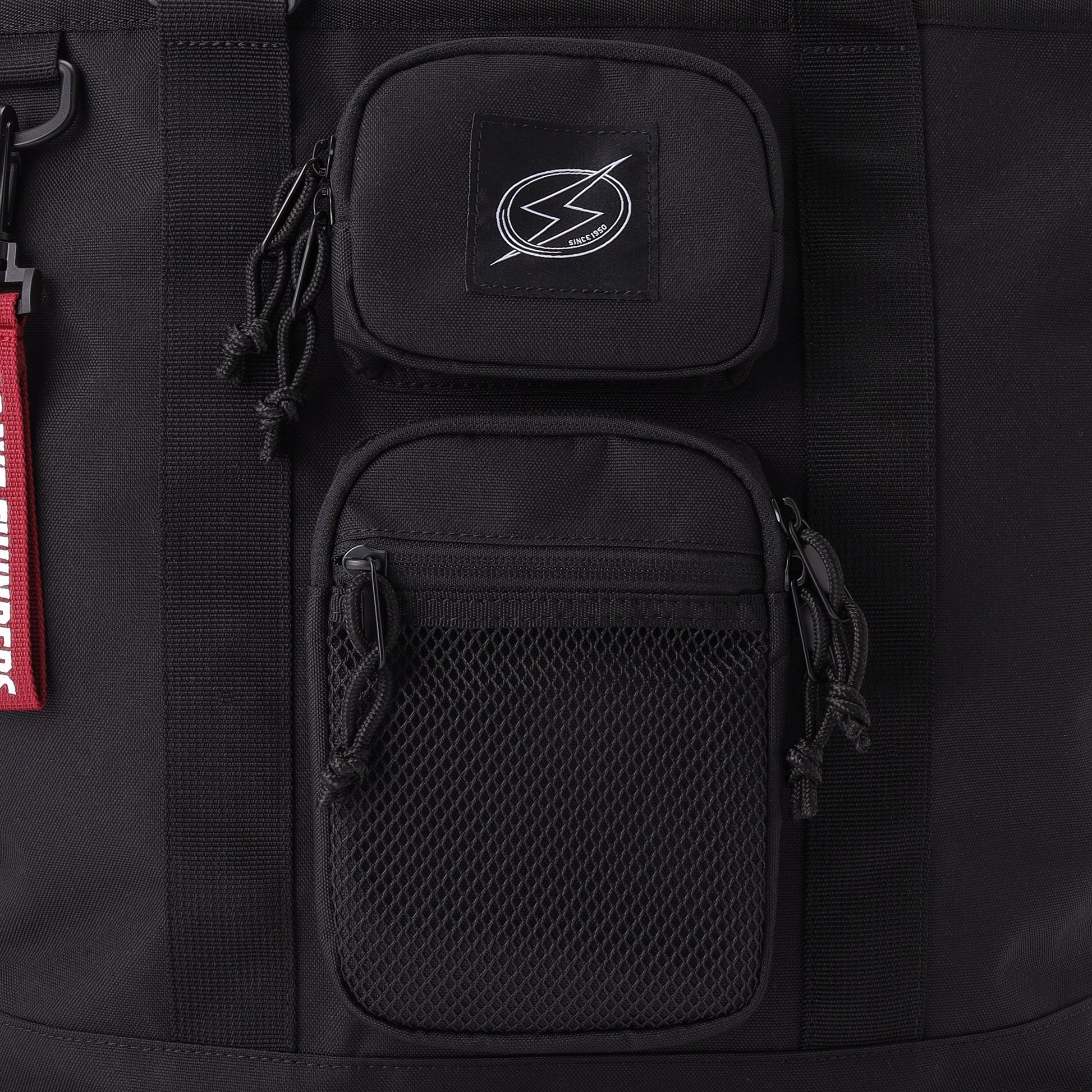 テキストロゴ入りのタブがアクセントの応援トートバッグ。ショルダーストラップは長さの調節も可能です。ファスナー式の上蓋、小物の収納管理に便利なメッシュポケットとインナーポケットも配置し、アウェー観戦にも使い勝手の良いサイズになっています。