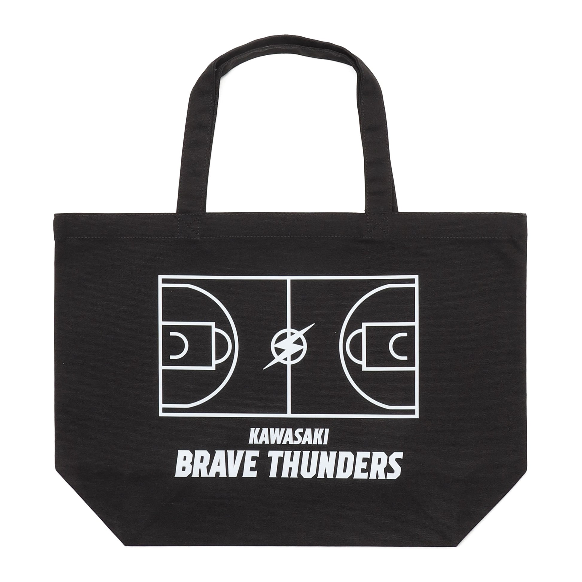 川崎ブレイブサンダースのロゴ入りオリジナルトートバッグ。バスケットボールコートがグラフィカルにデザインされたスタイリッシュなデザイン。マチがあり、しっかりとした収納力で様々なシーンで活躍する便利なアイテムです。