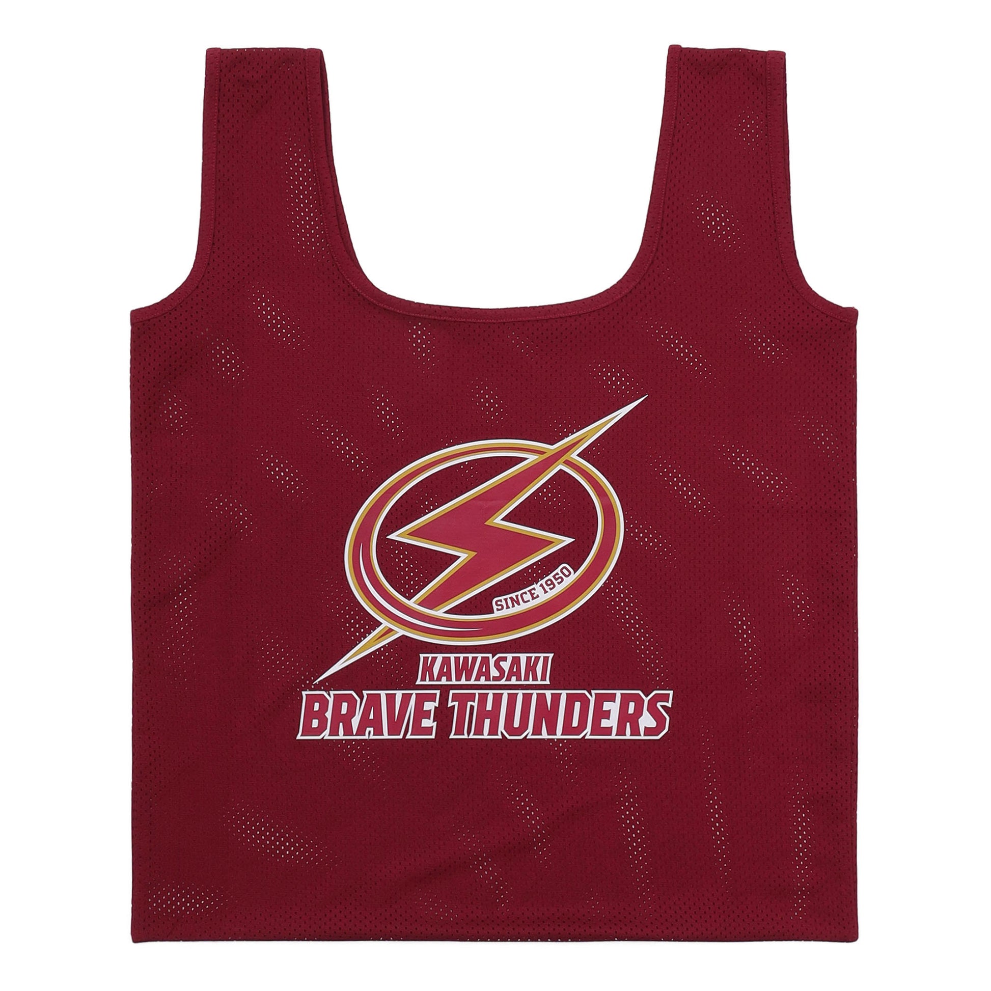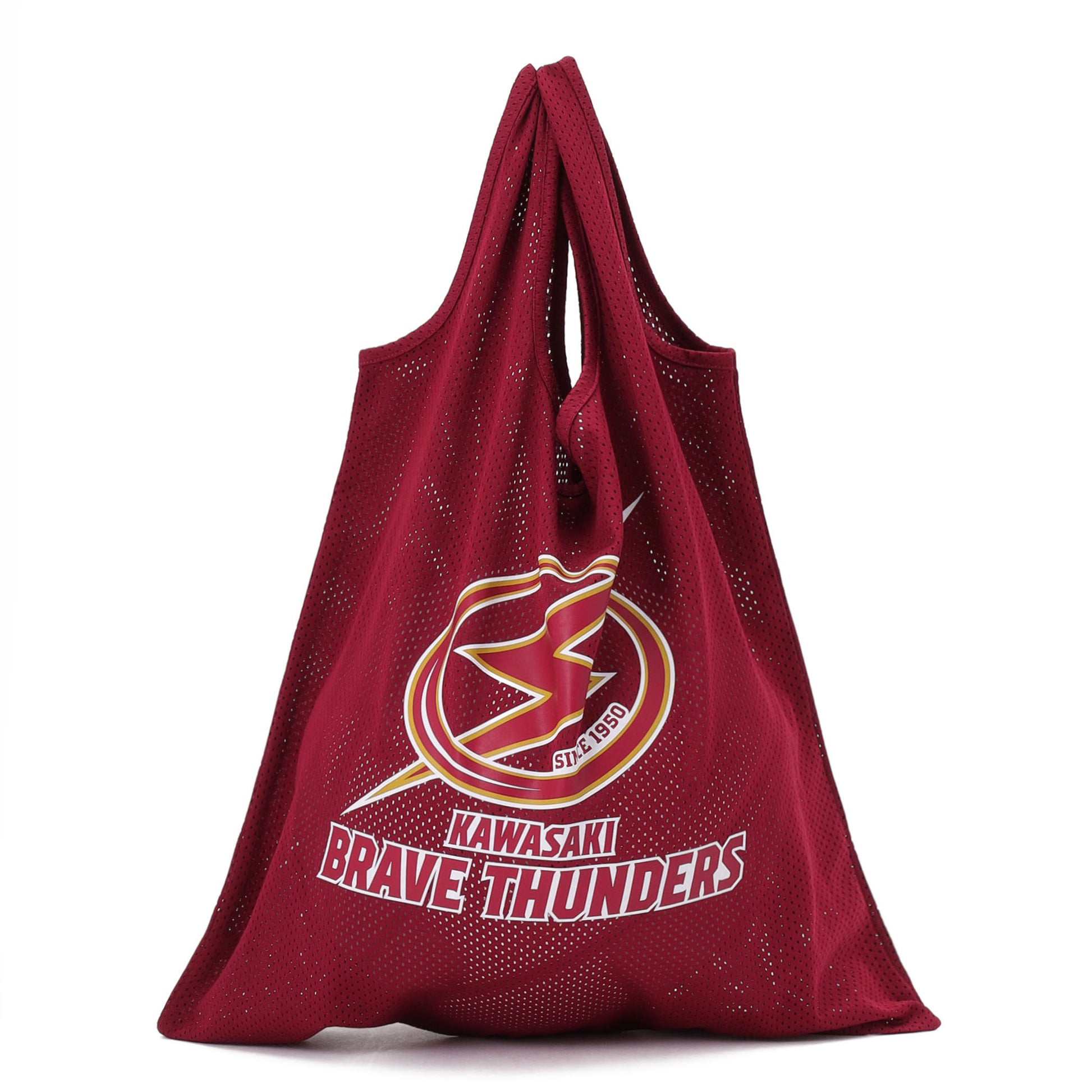 川崎ブレイブサンダースのロゴプリントのボールバッグ。球技スポーツでおなじみのメッシュビブスからサンプリングされたオリジナルのボールサックです。バスケットボールが入る十分な収納力も魅力。カバンに入れて携帯したりとサイドバッグとしてもデイリーに活躍する便利なアイテムです。