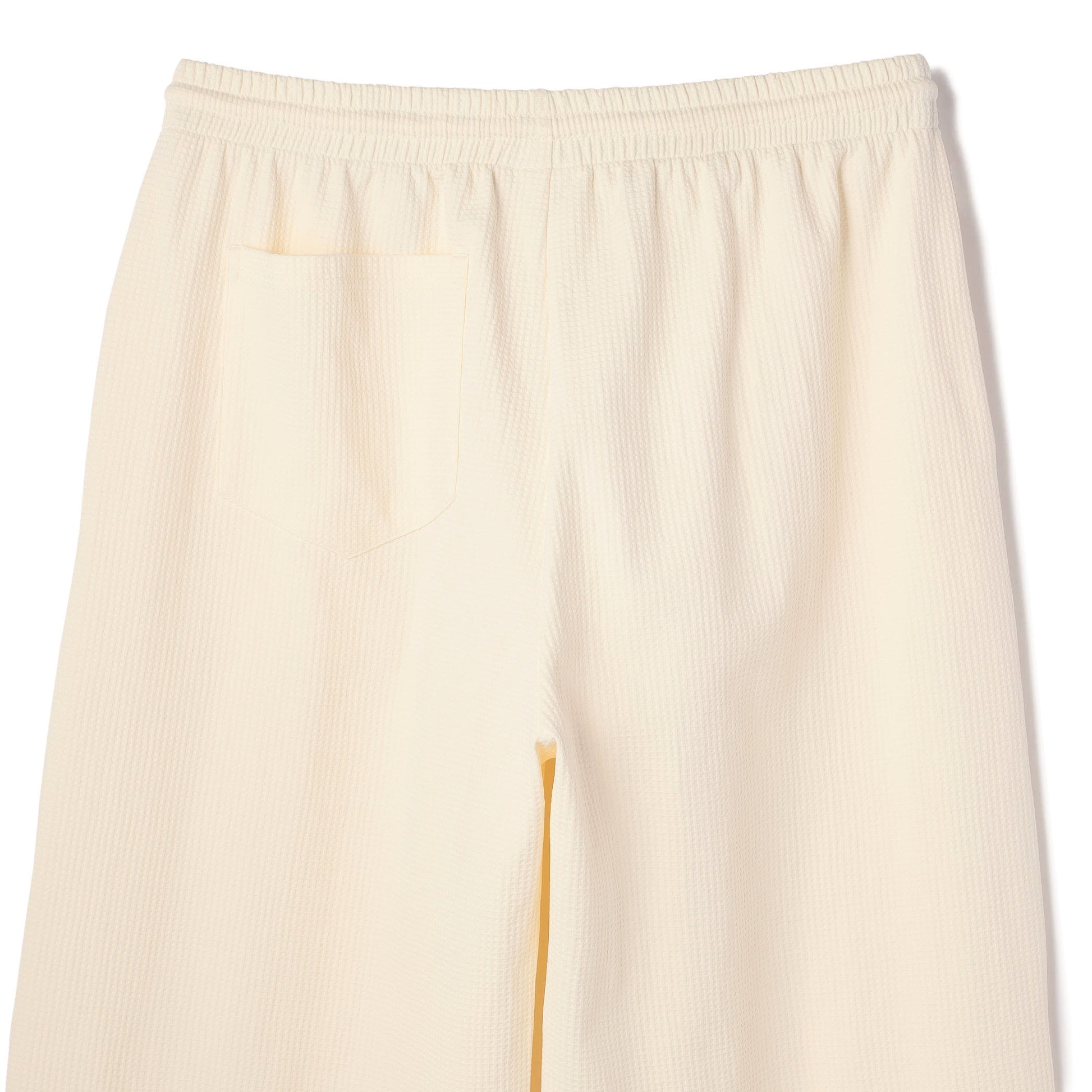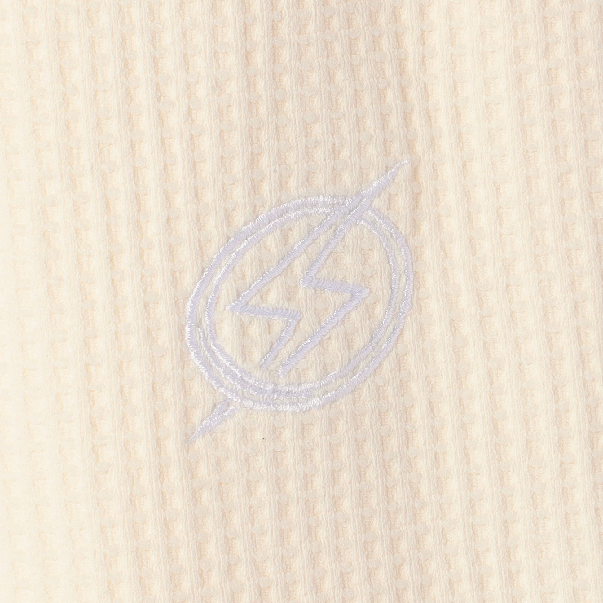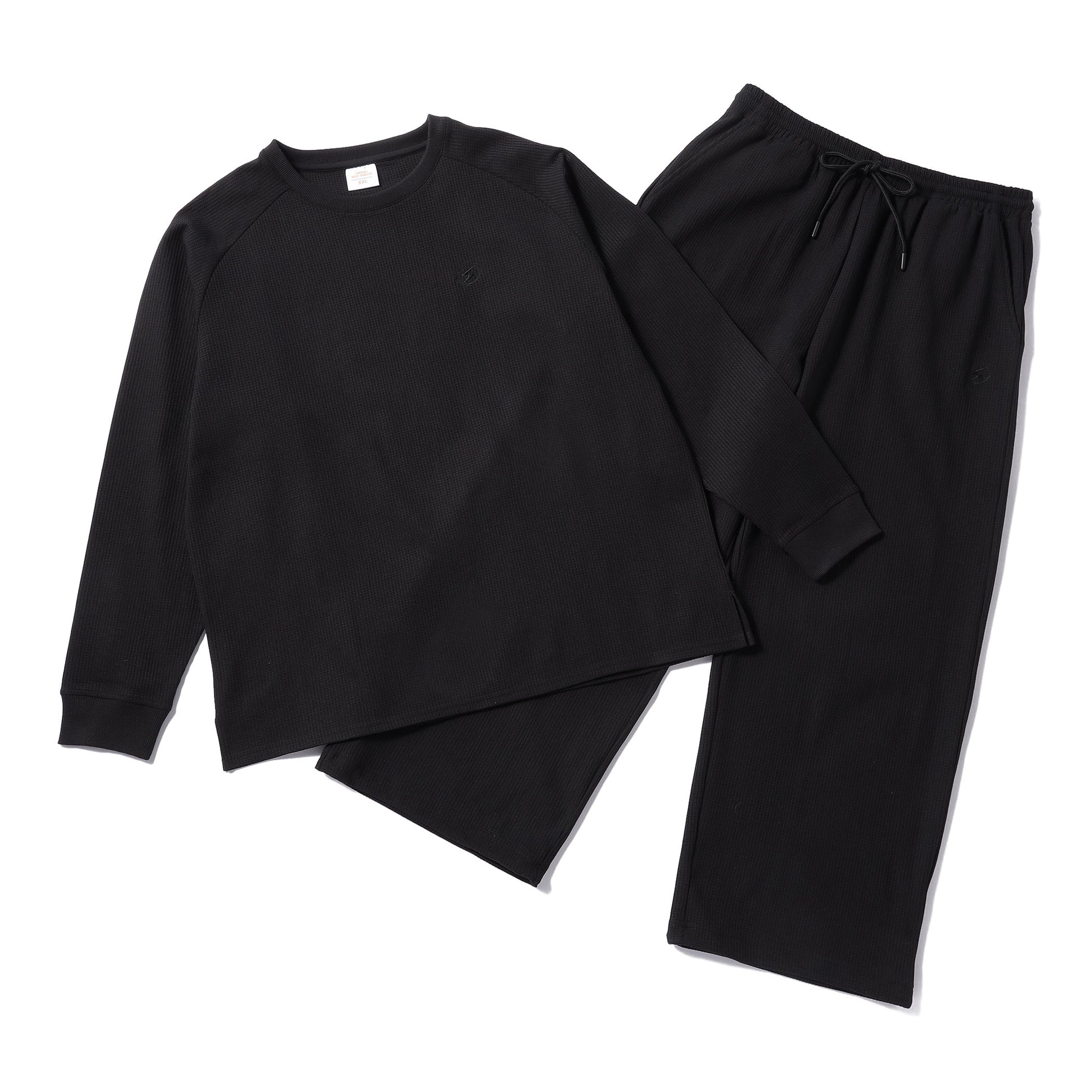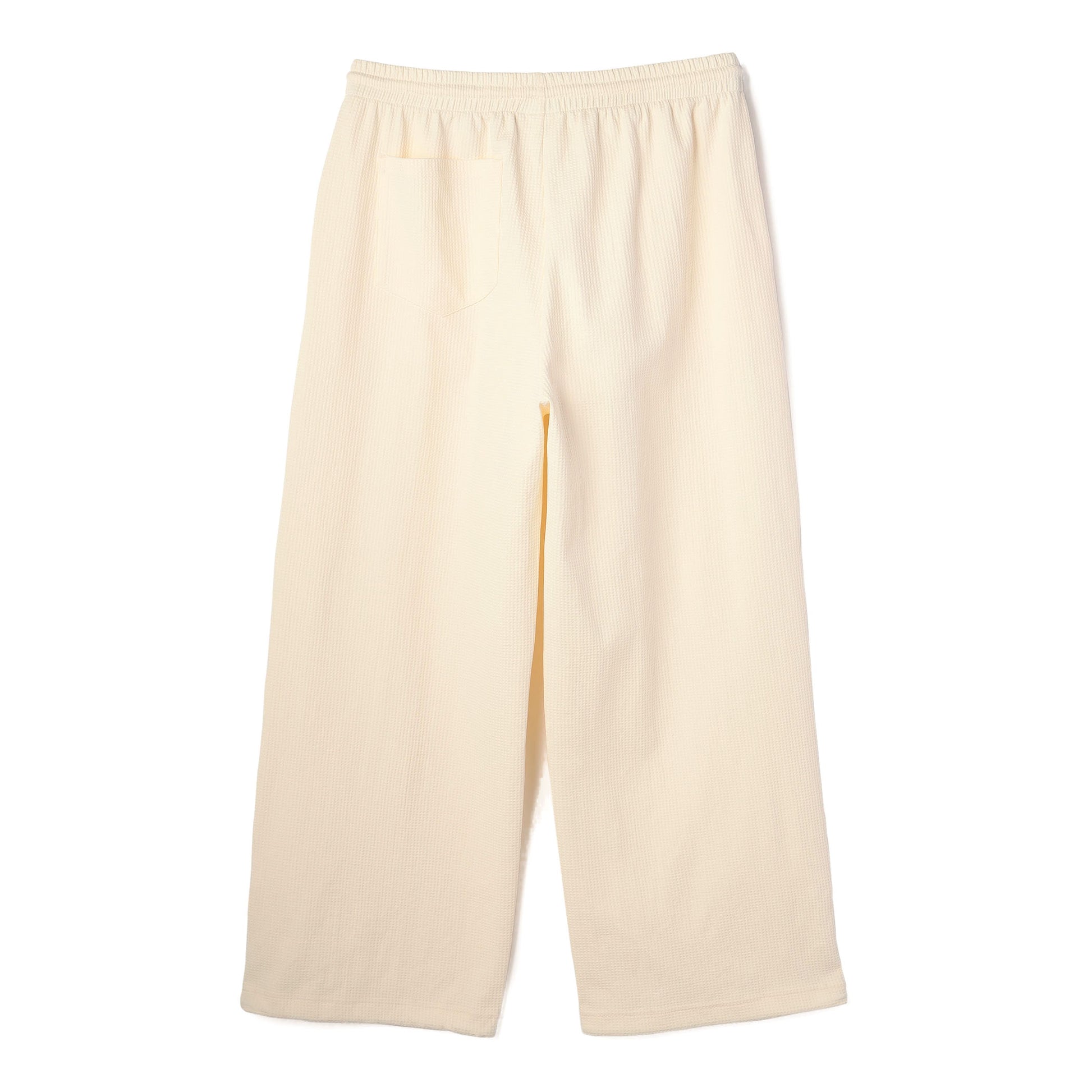 肌触りが良く快適な履き心地のワッフルパンツ。シンプルなデザインはスタイリングに合わせやすくおすすめです。ウエストはフィット感の調整ができるドローストリング仕様。サイドとバックにポケットを配置。左腿にはさりげなく川崎ブレイブサンダースのプライマリーロゴを添えています。
