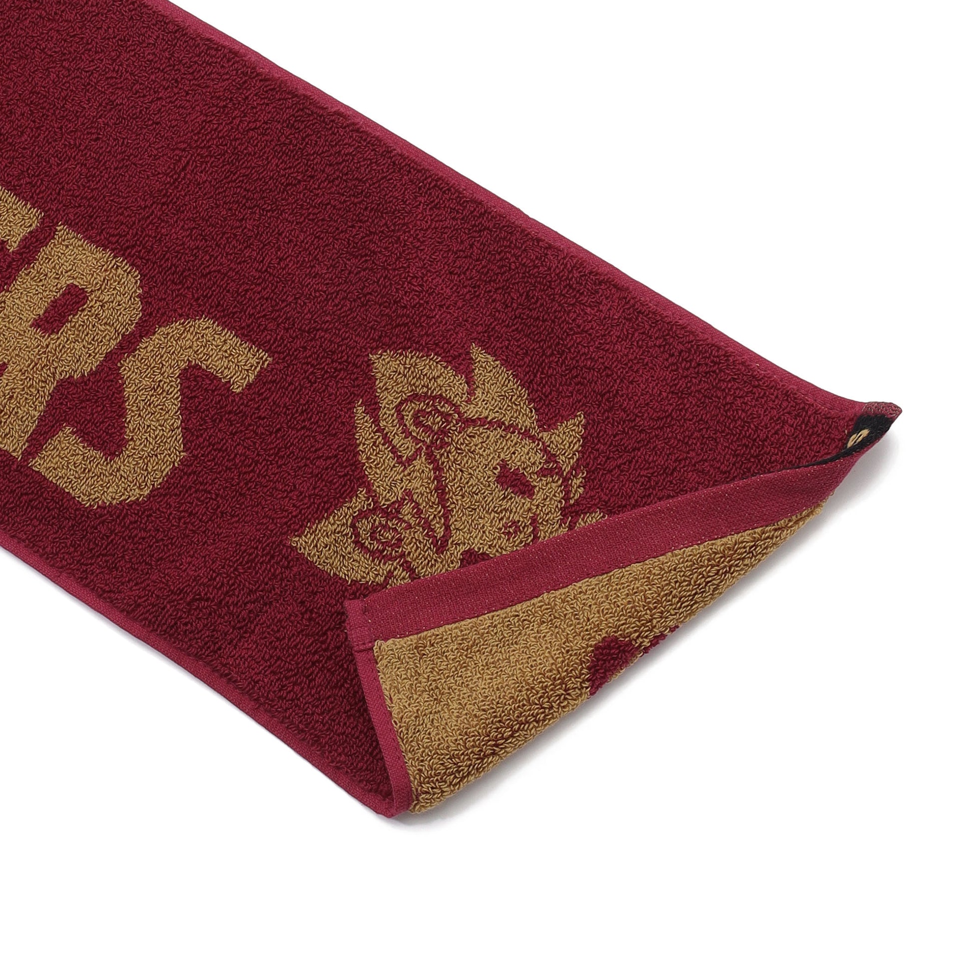 ロゴとロウルのデザインが入った、肌当たりのよいパイル地の定番マフラータオルです。