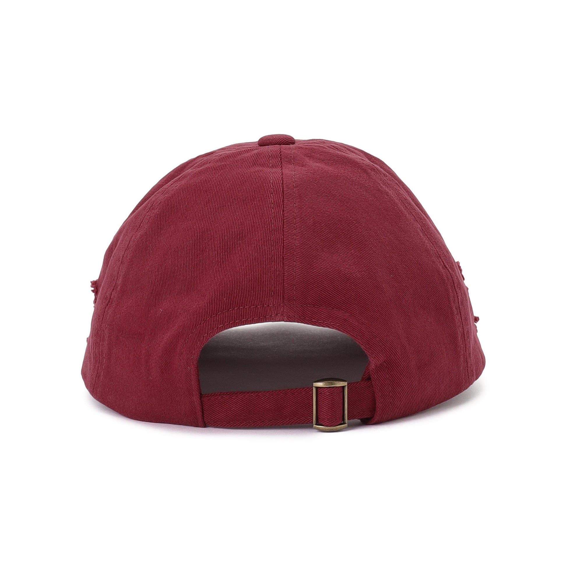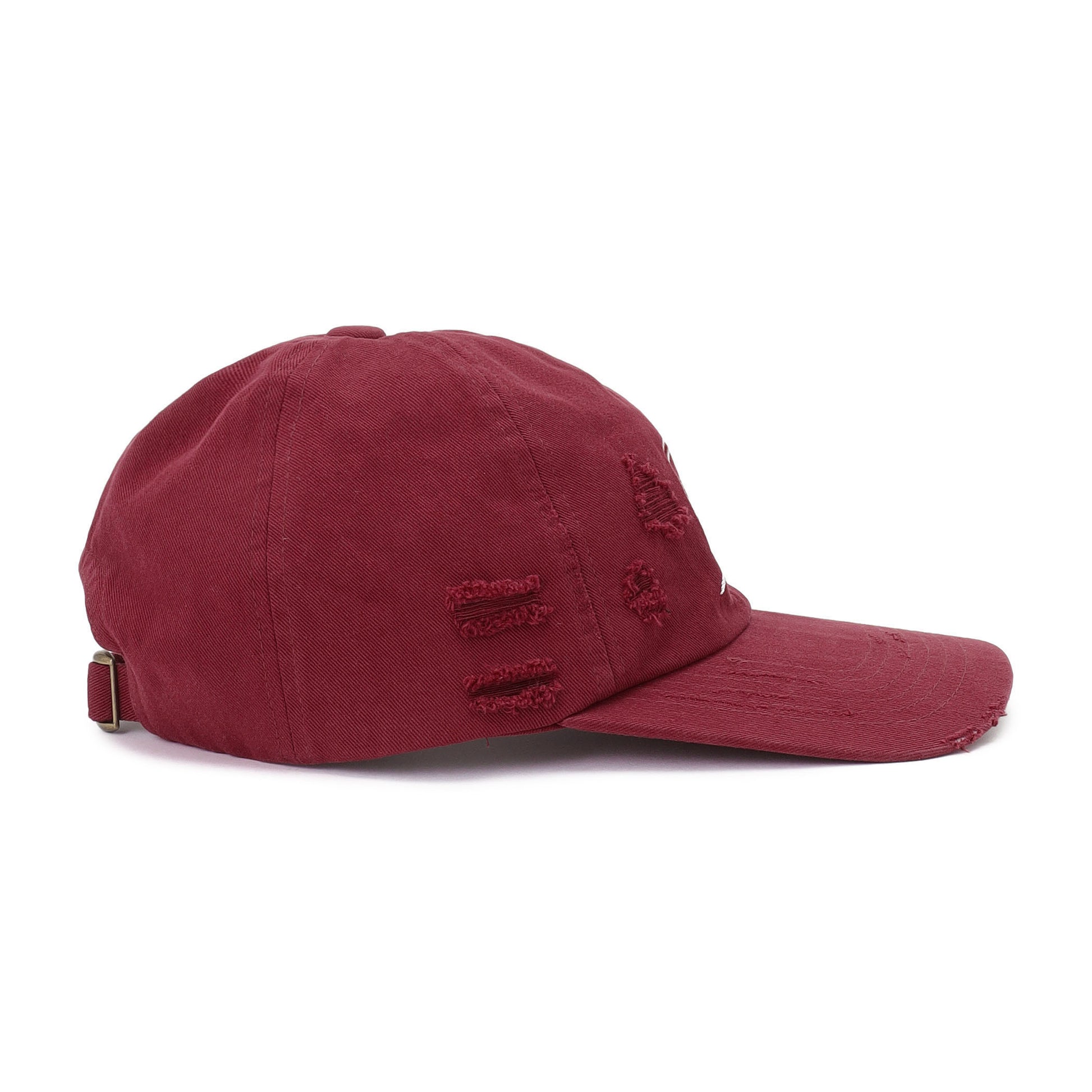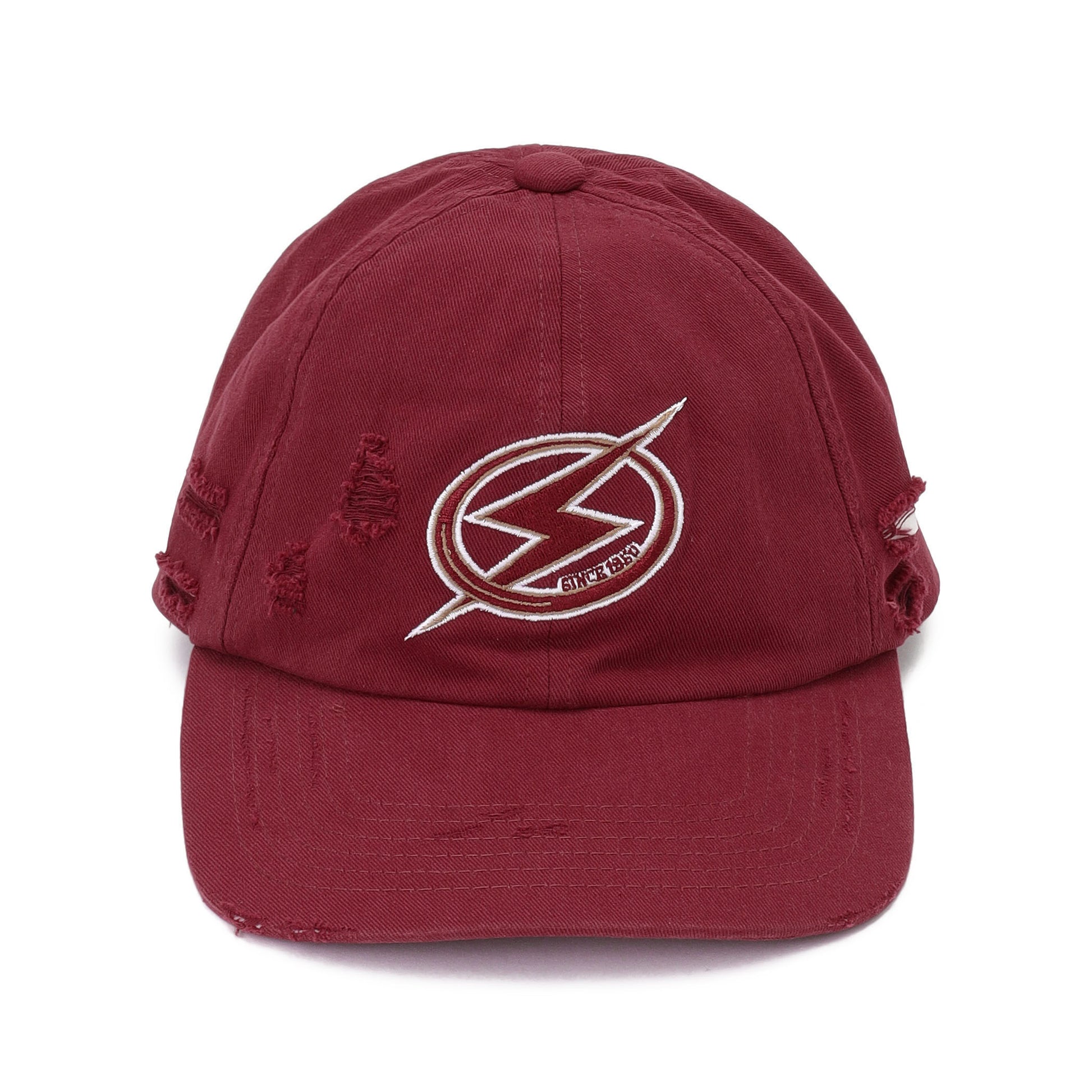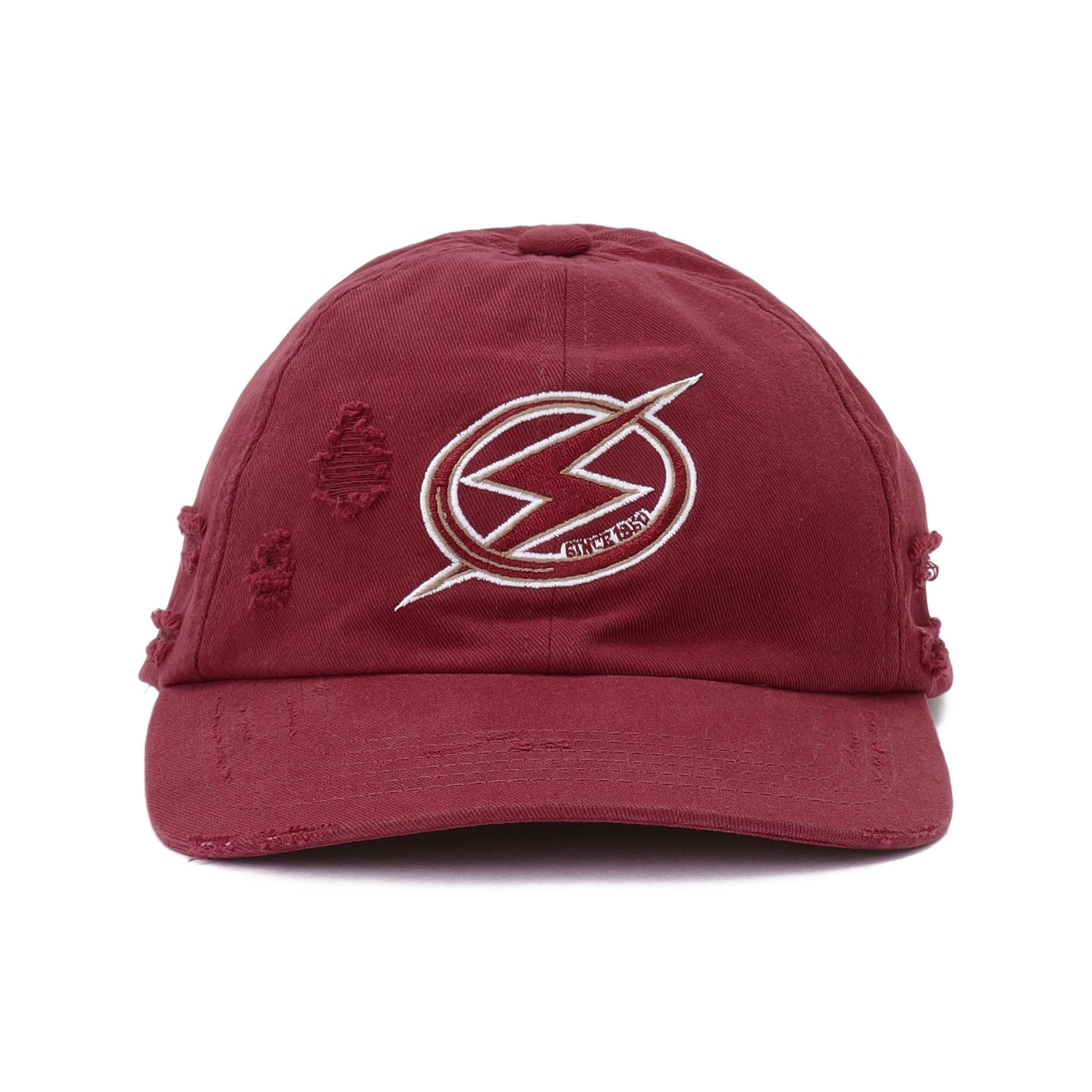 フロントにロゴを配置したキャップです。ダメージ加工をほどこし、さりげないアクセントに。バックはサイズ調整可能なアジャスター仕様となっています。ブラックとブレイブレッド、2色展開です。