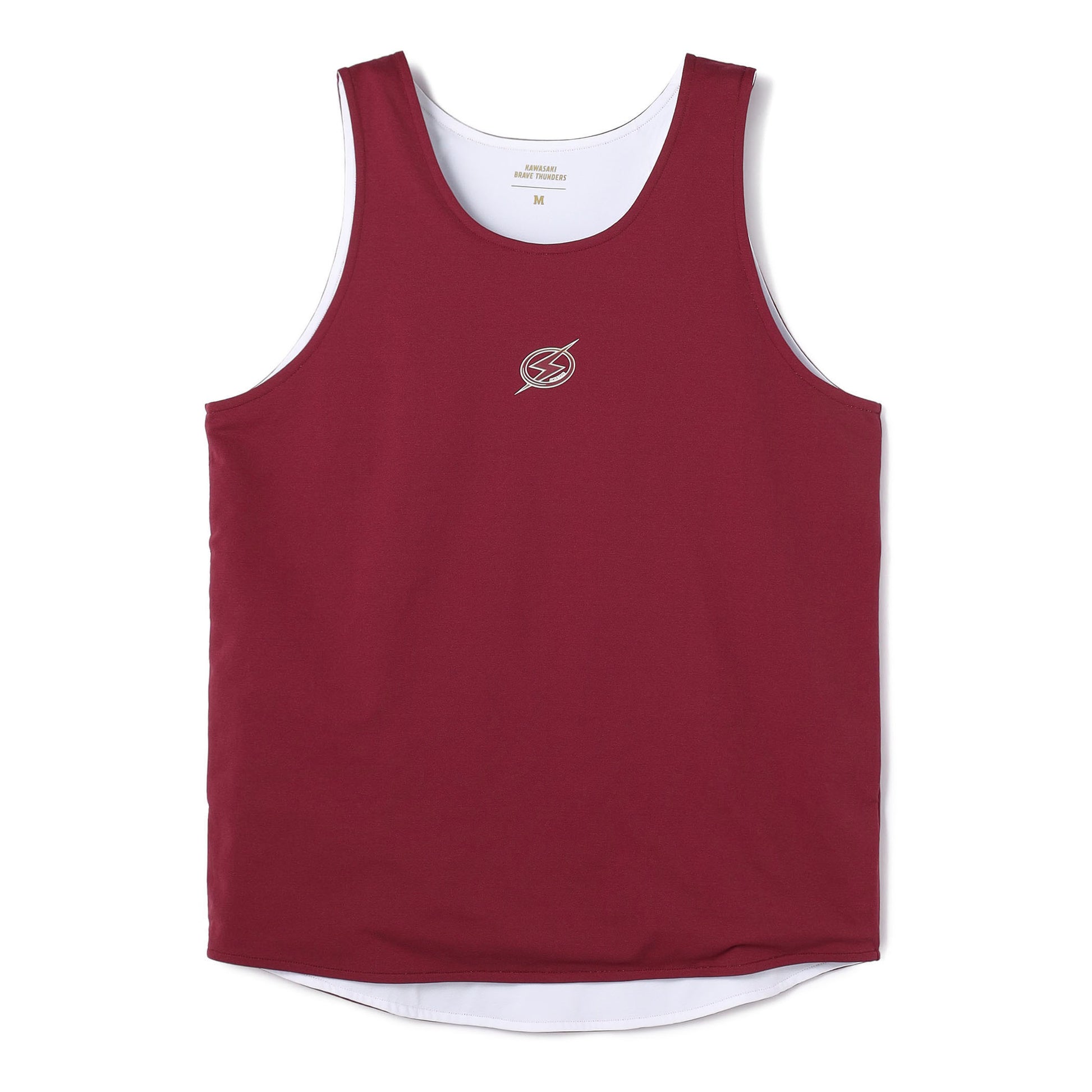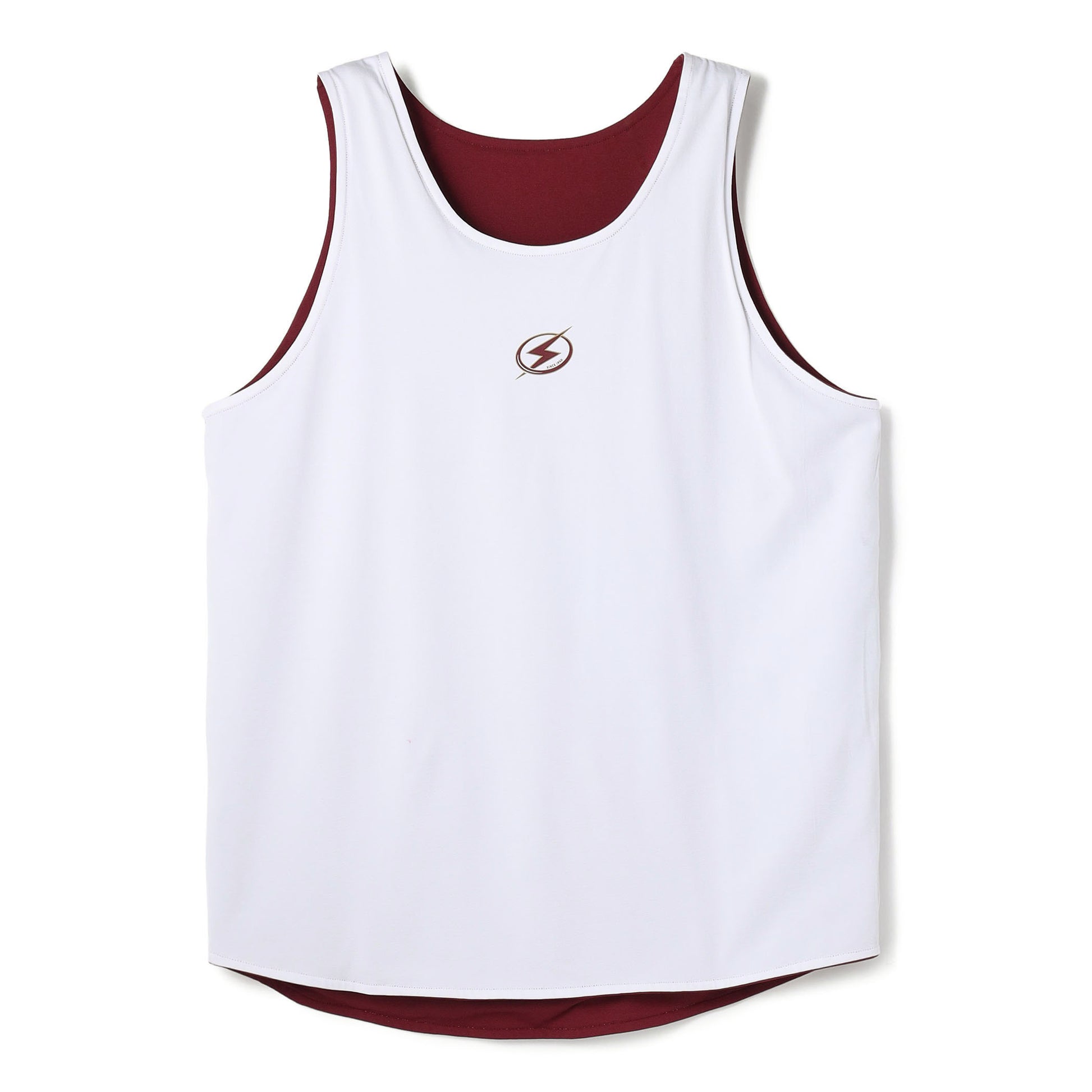 無地ベースにチームロゴが映える、ミニマルなデザインのタンクトップ。ボディラインを拾わないゆったりとしたシルエットが心地良く、リラックスウエアとしても重宝する1枚です。リバーシブル設計になっているので、その日の気分やコーディネートに合わせて、2パターンの表情をお楽しみいただけます。