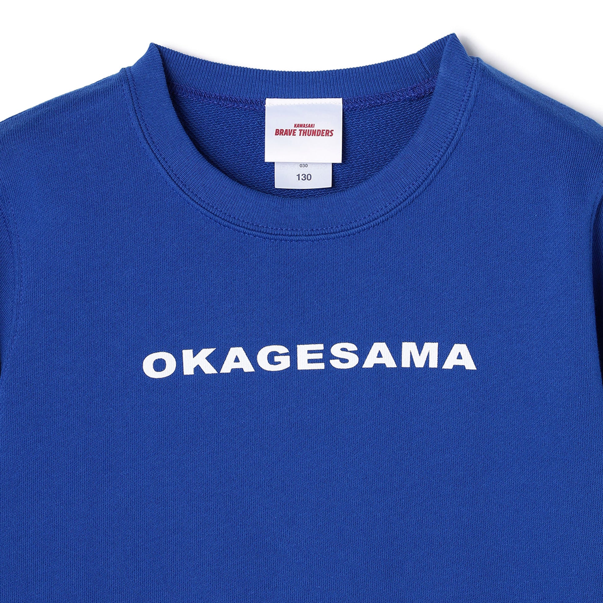 篠山竜青選手が座右の銘である"OKAGESAMA" シリーズのクルーネックトレーナーキッズサイズ。裾と袖にリブを配したメリハリあるシルエット。裾のタグもおしゃれなアクセント。応援時はもちろん、デイリーからお出かけまで幅広く活躍します。