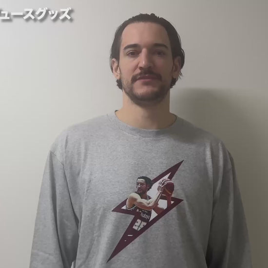 アレン選手のキャッチコピーである「LIGHTNIG」をイメージした稲妻の中に試合で戦う選手写真をデザインしたTシャツです。袖にも背番号とイニシャルが入っています。