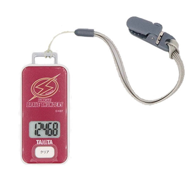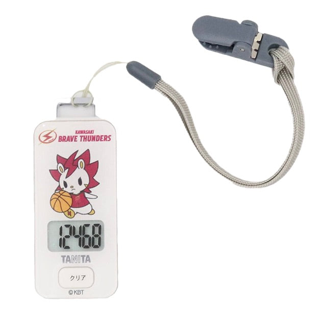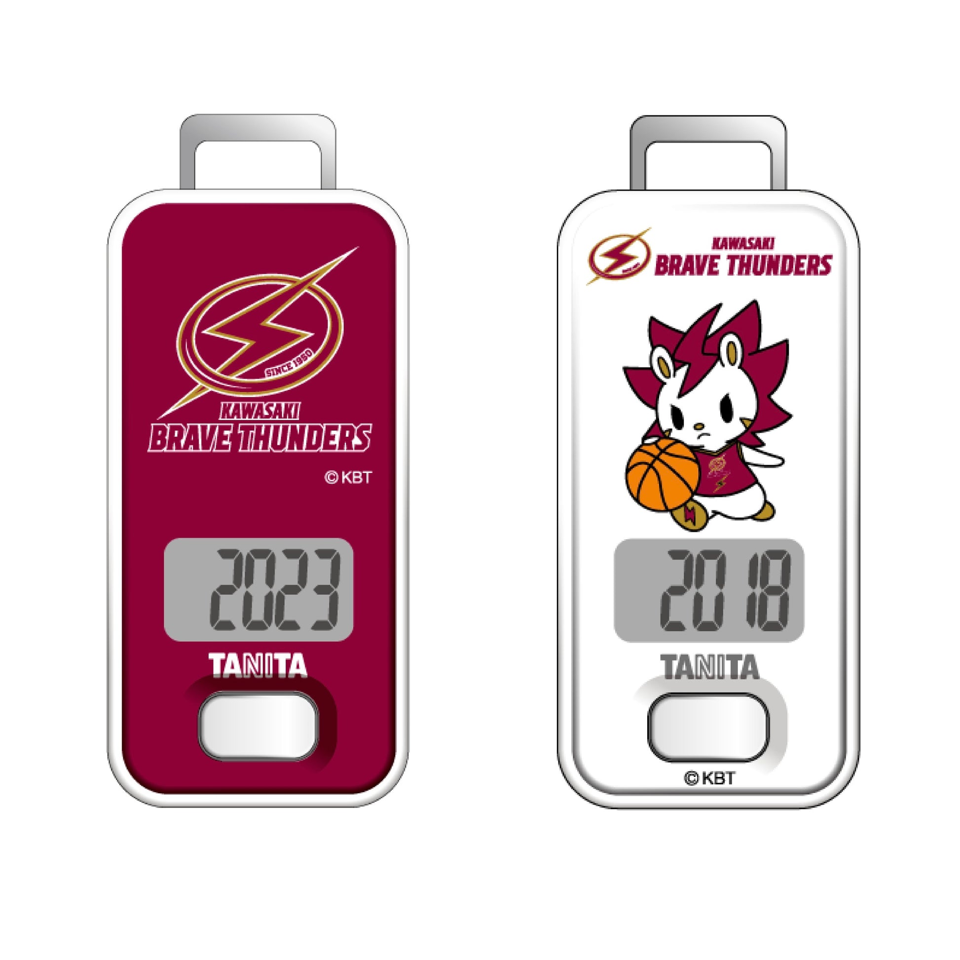 川崎ブレイブサンダースのロゴ、マスコットがデザインされた歩数計です。