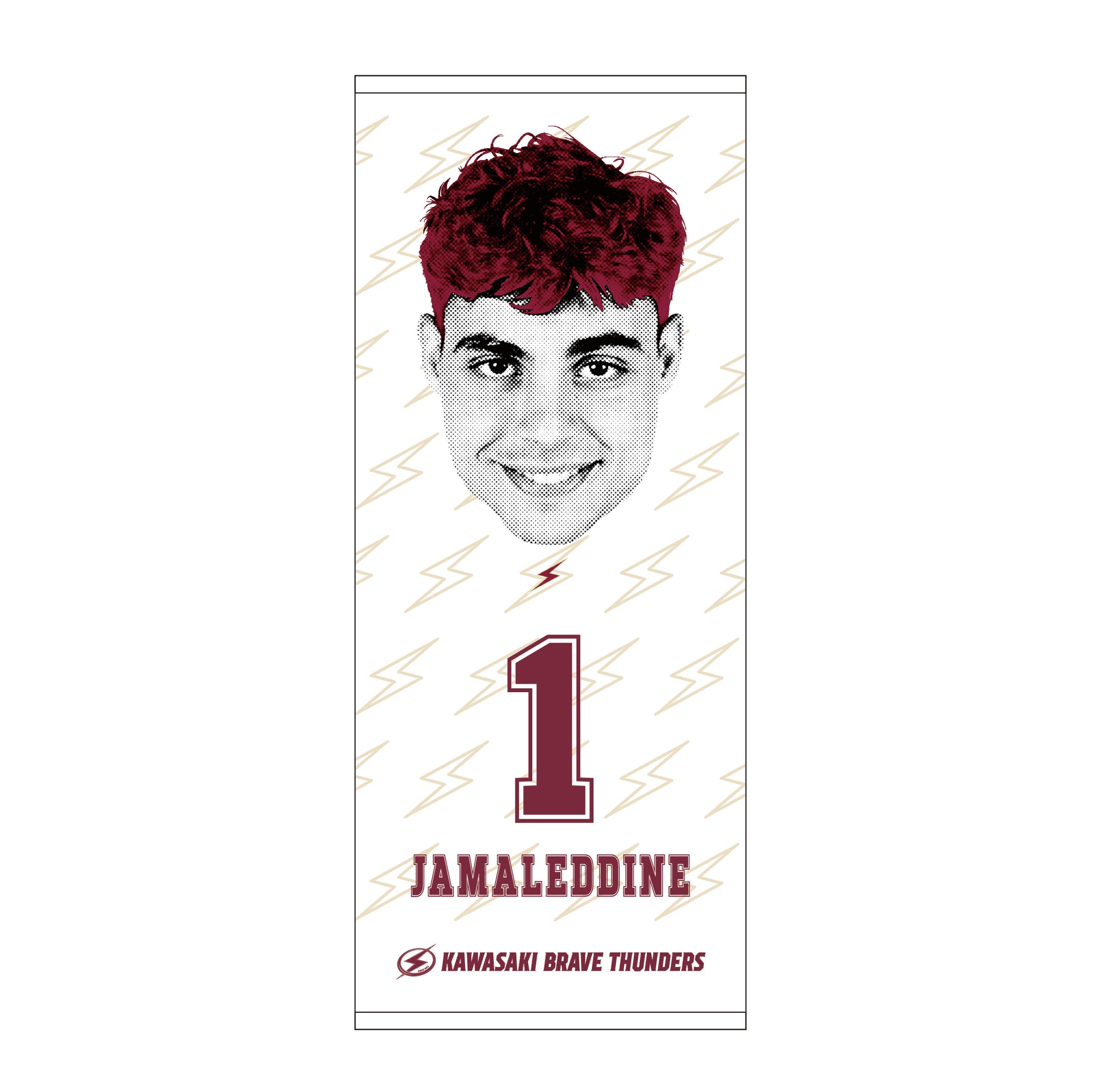 選手の顔、ネーム&ナンバーが入ったフェイスタオル。