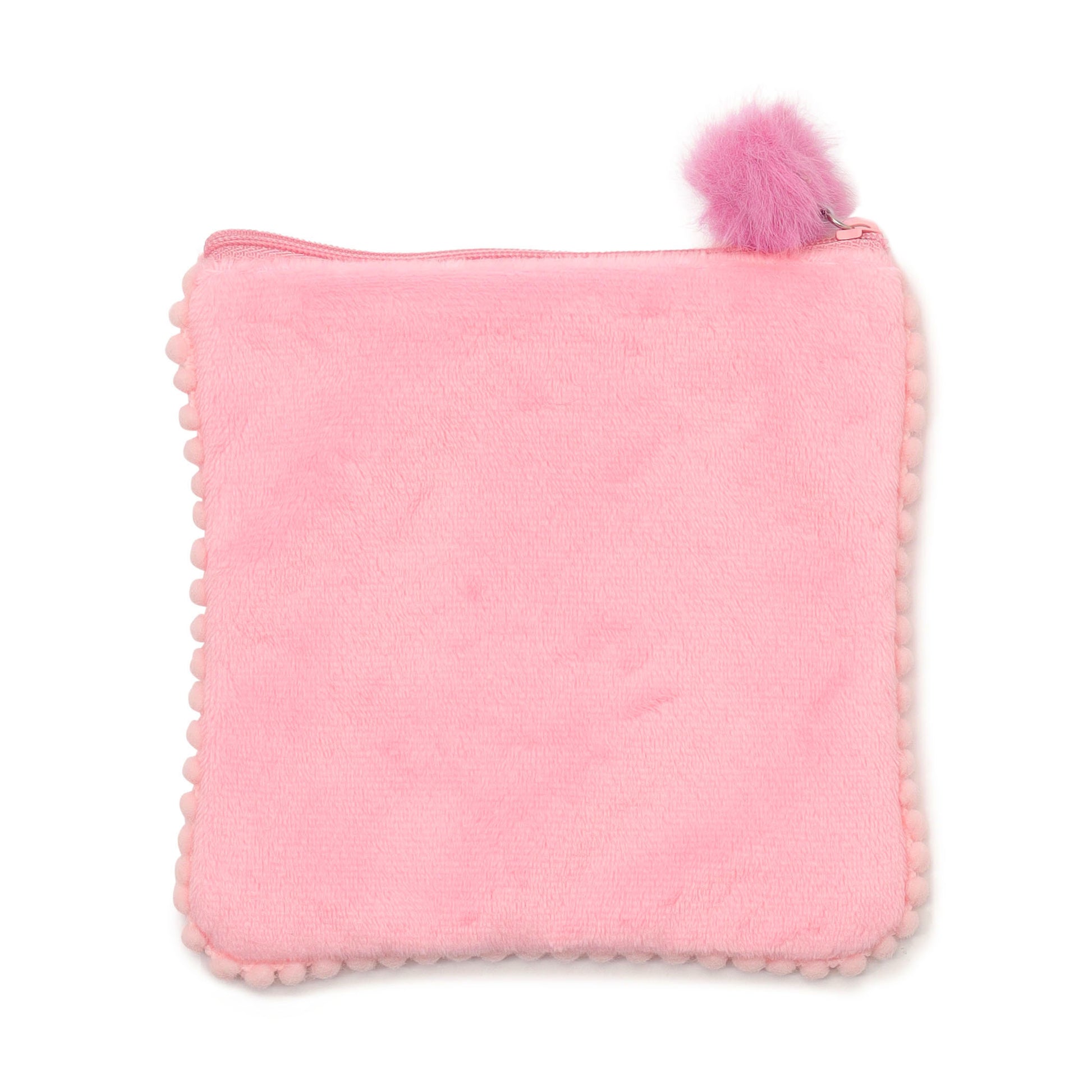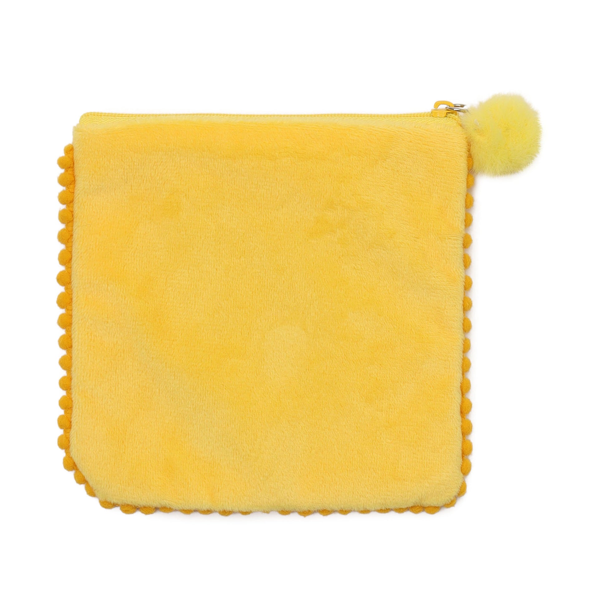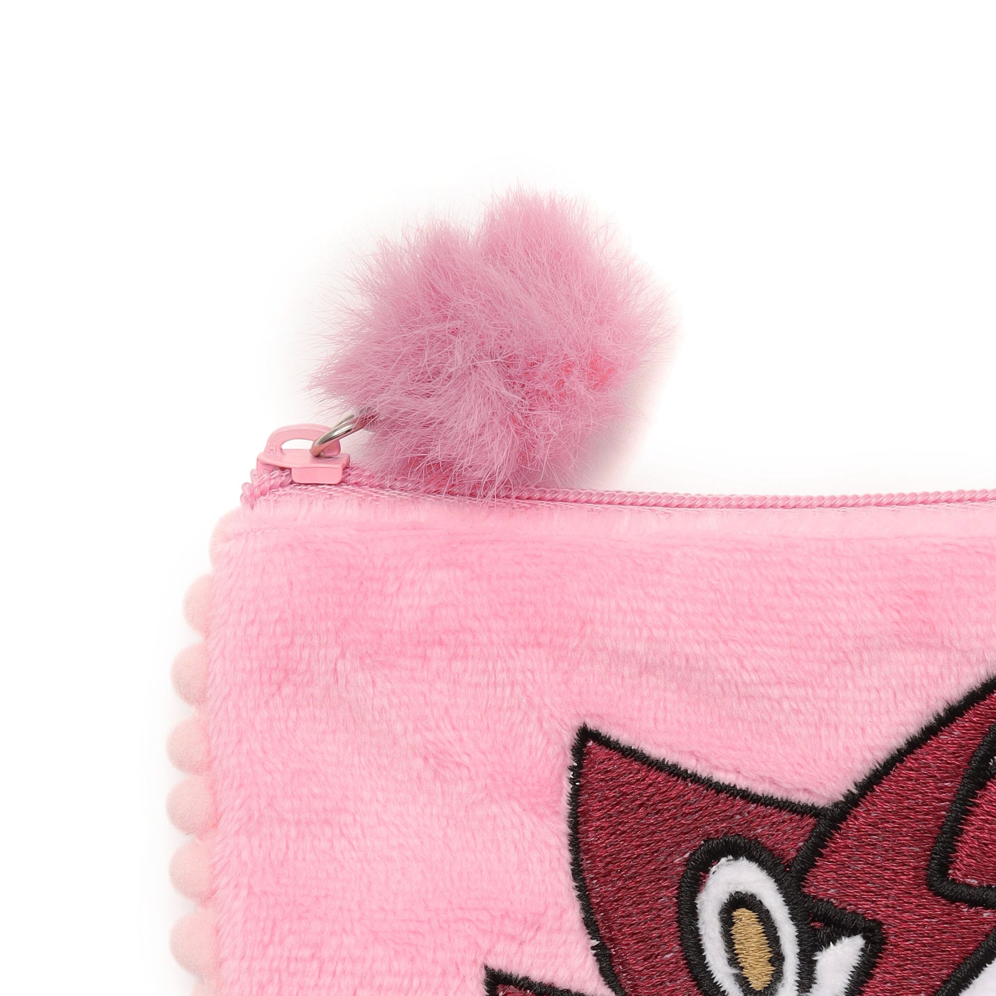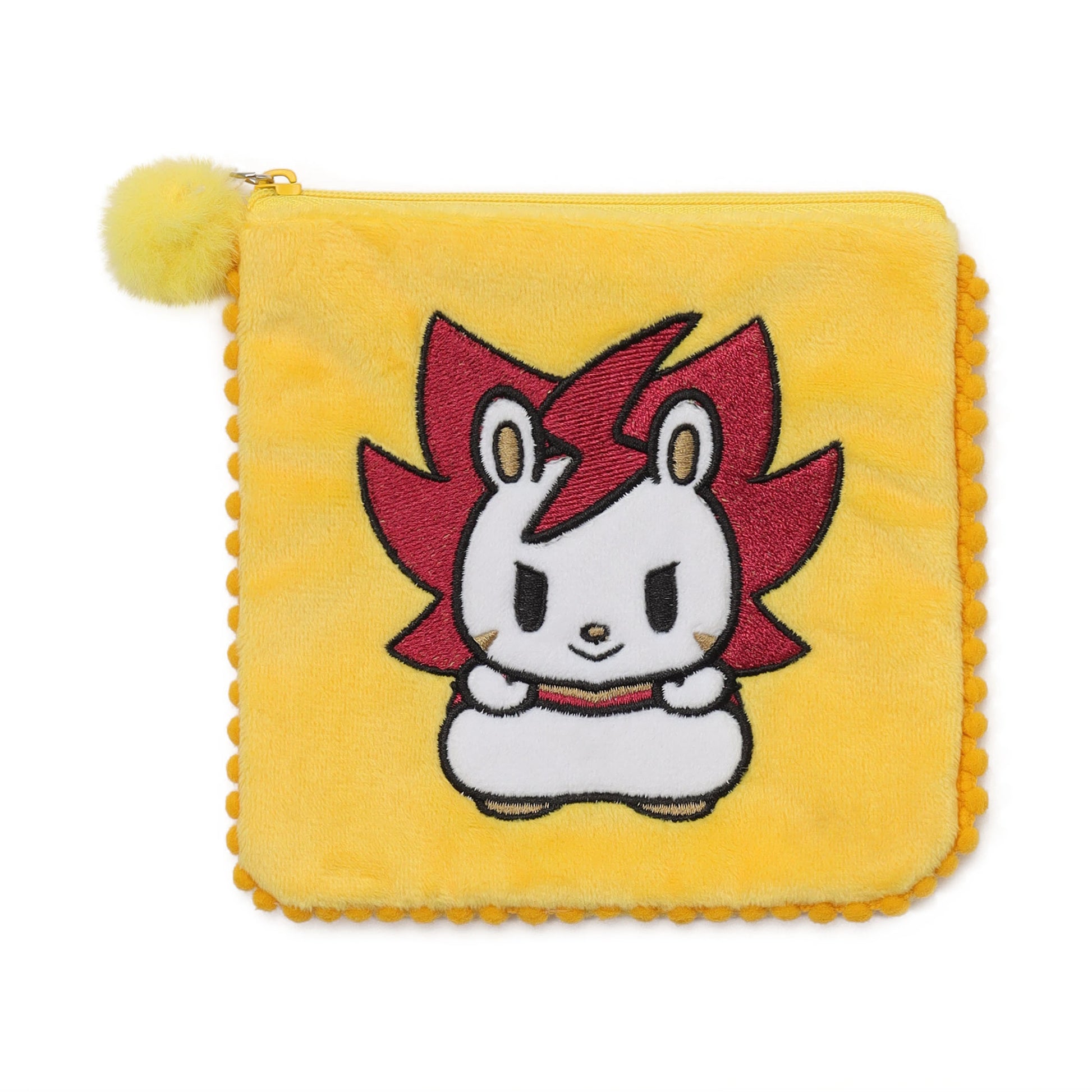大きなマスコット刺繍が目を引くポーチ。凹凸のあるパイピングやジップのポンポンチャームなど、細部にまでこだわっています。モバイルアクセサリーや常備薬など、こまごまとしたアイテムの収納にも重宝します。