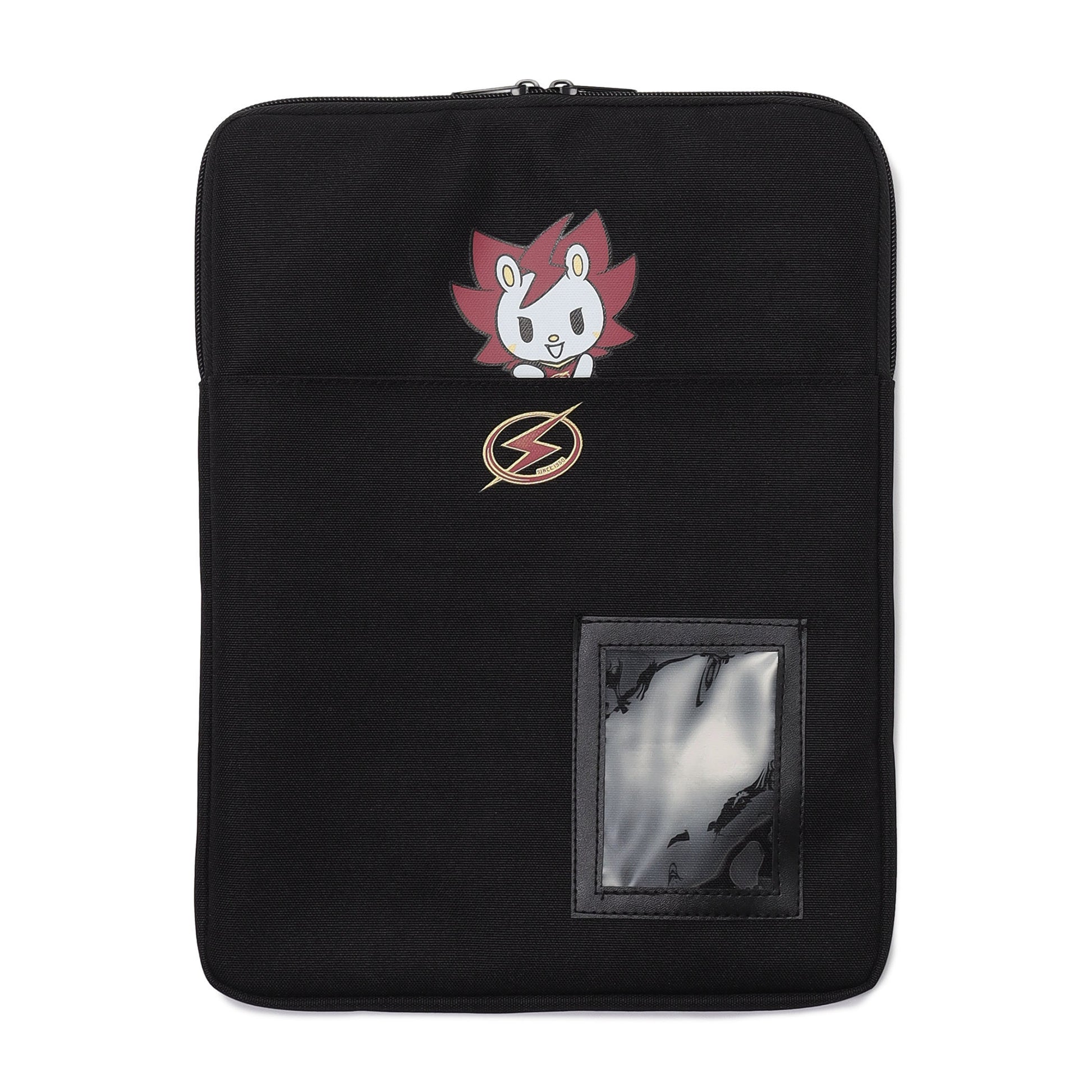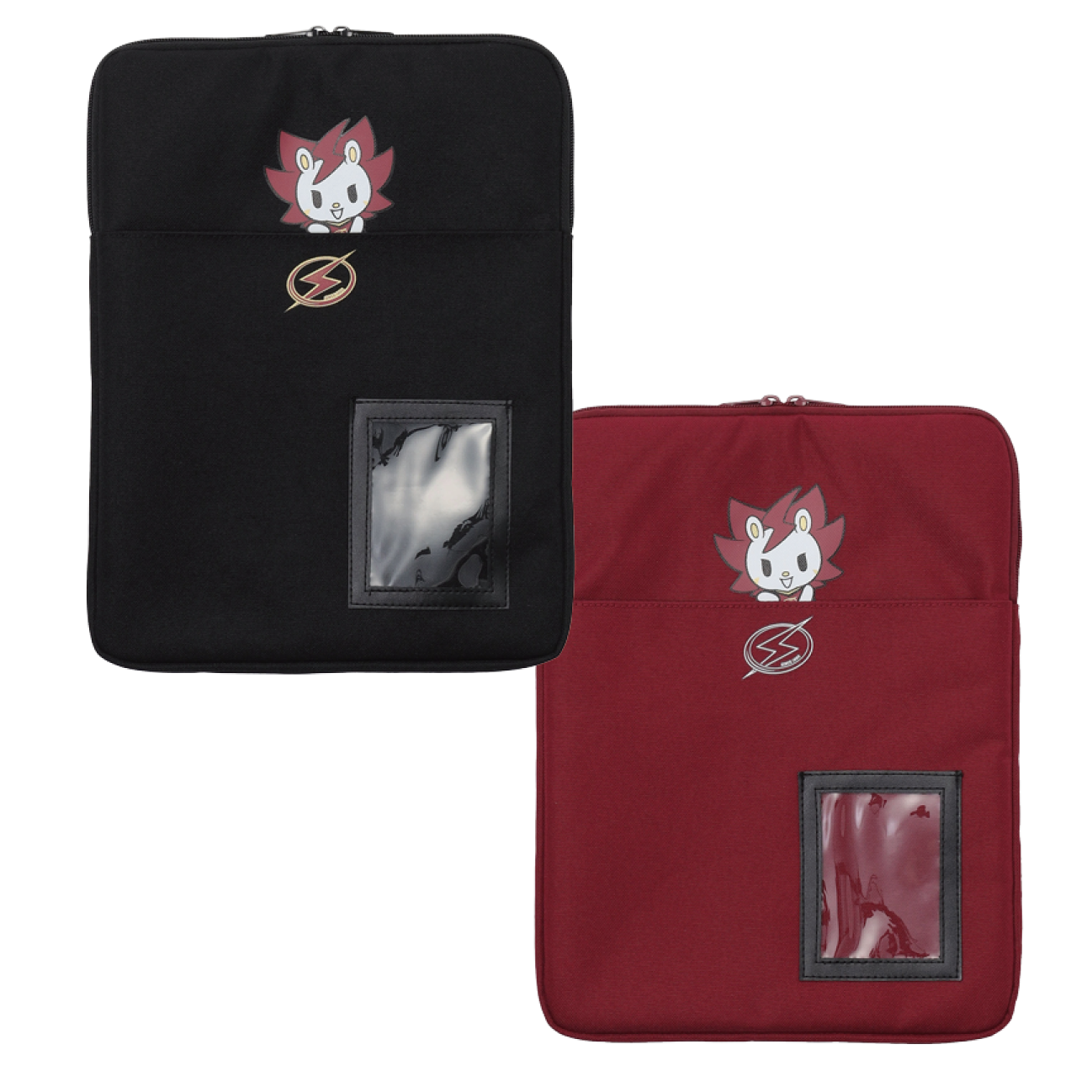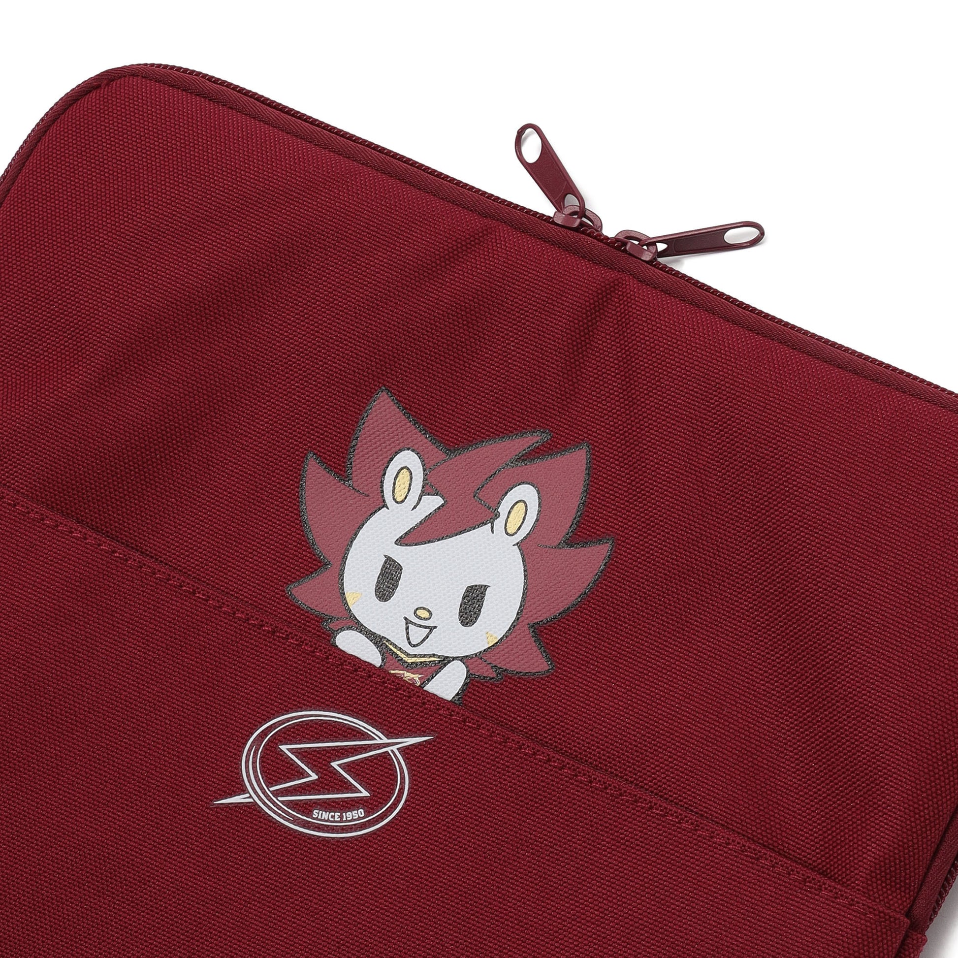 マスコットロウルがポケットに入っているように見える可愛いプリントがほどこされたパソコンケース。両側に大きく開くファスナー開口で、出し入れもスムーズに行えます。中央に添えたチームロゴがワンポイントに。