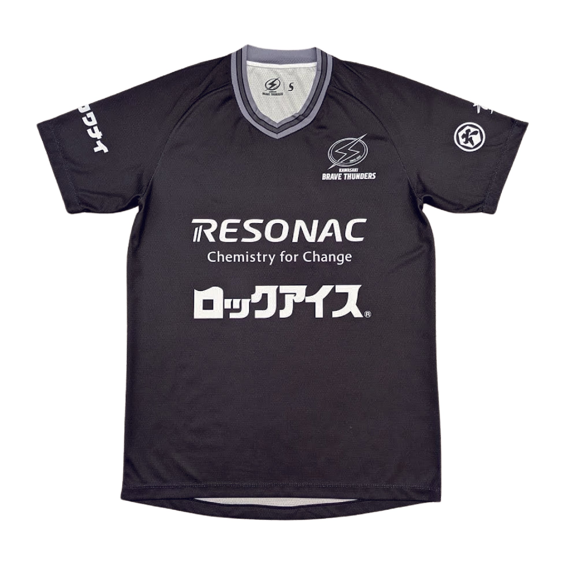 フロント、バックにプリントがあしらわれたレプリカシューティングTシャツ。ゆったりとしたラグランスリーブ、腰まわりをカバーする後ろ下りのシルエットがリラックスしたムードで着こなせるアイテムです。左胸には川崎ブレイブサンダースのロゴ入り。