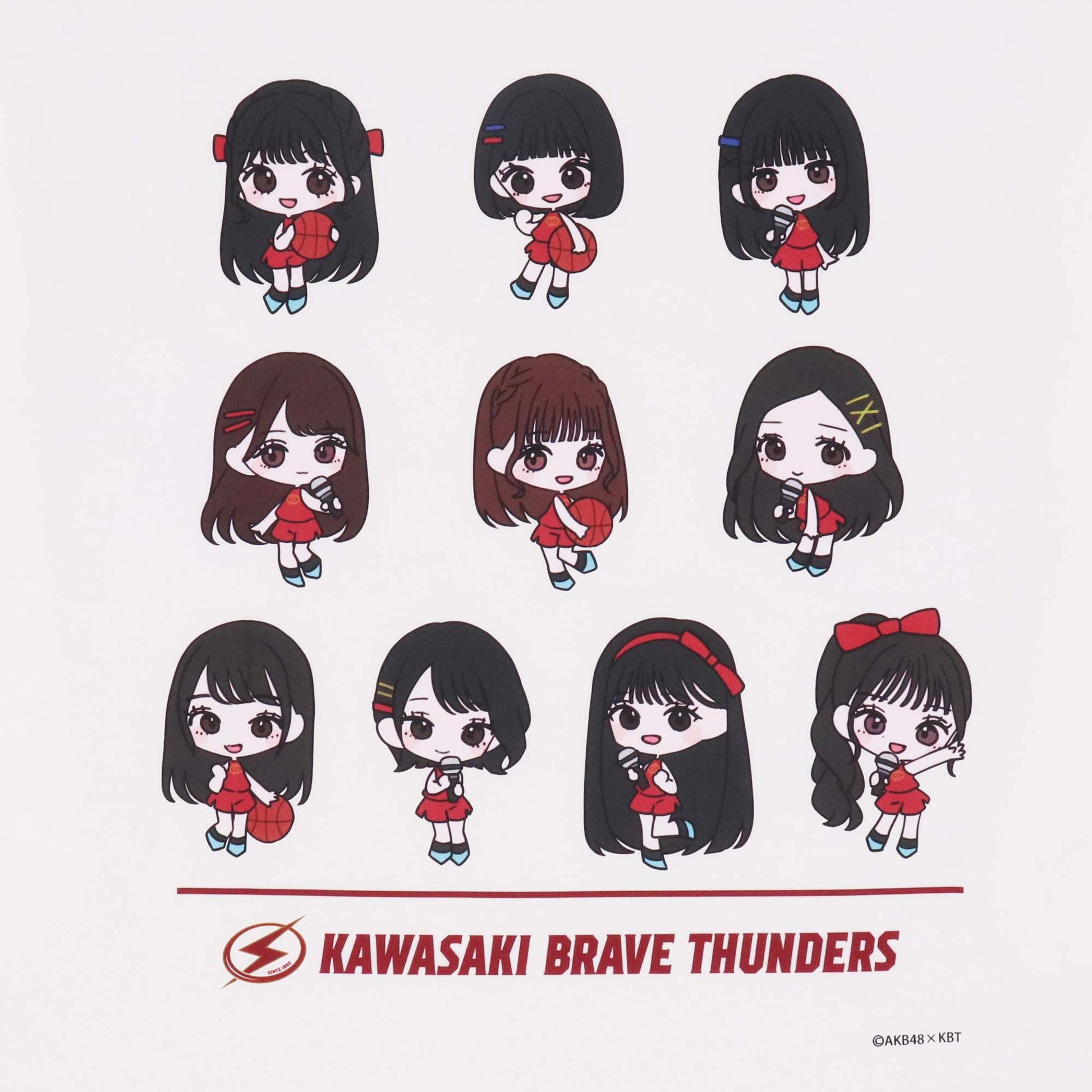 AKB48×KBT WEEK のLOGOと背面にはAKBバスケ部メンバーのイラストが入ったコラボレーションTシャツ。ワンポイントのロゴ使いにバックプリントはメンバーイラストとクラブロゴが配置されています。カジュアルにも使用しやすい定番的なコットンTシャツです。