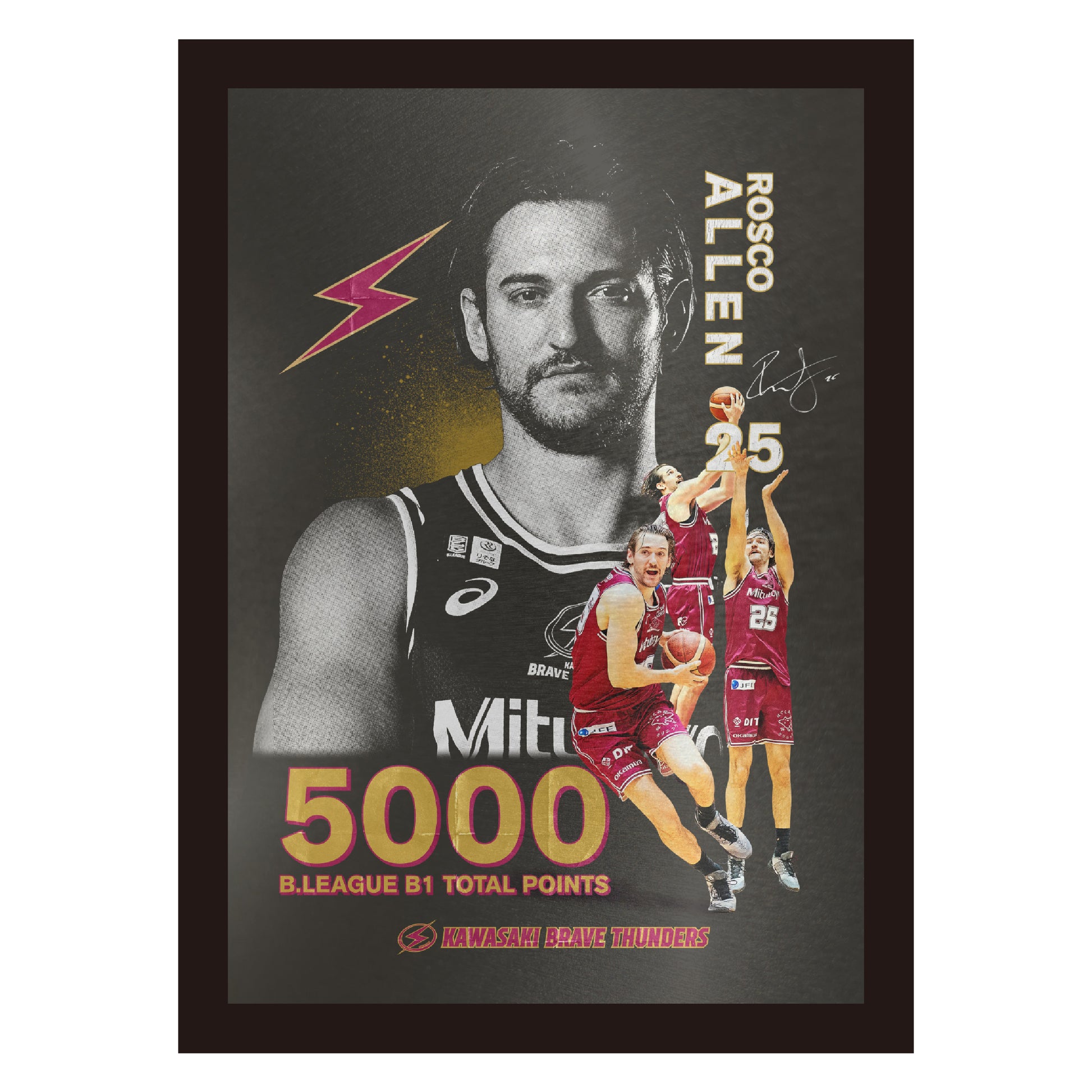 B1リーグの通算5000得点達成を記念したグラフィックをメタル素材にプリントされた特別感のあるメタルグラフィー。ブリキの板にインクジェットプリントをフルカラーで施し、ブリキの煌めきを感じることができるフォトグラフィーです。光の当たり方により、様々な煌めきを感じることができ、陰影を楽しんでいただけます。