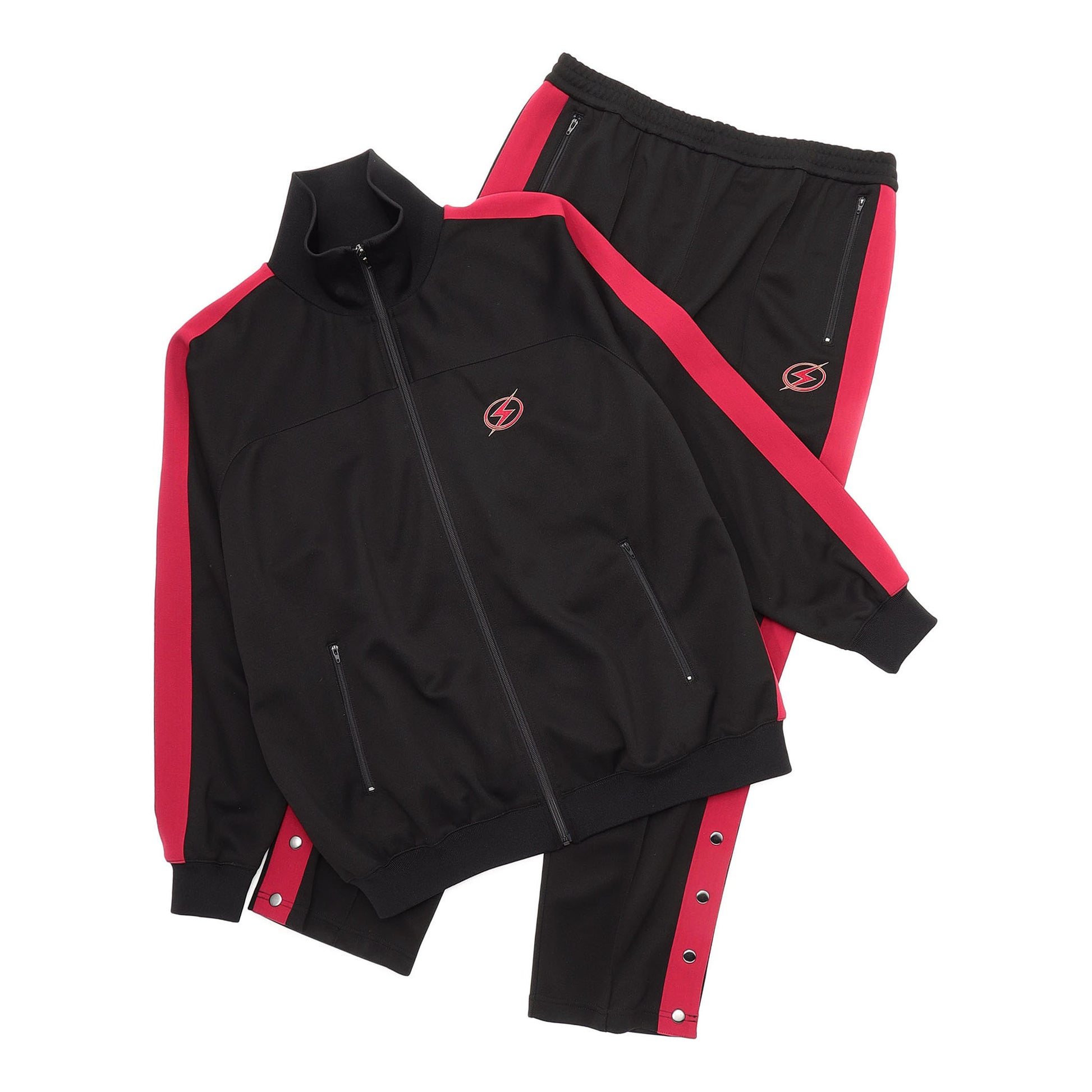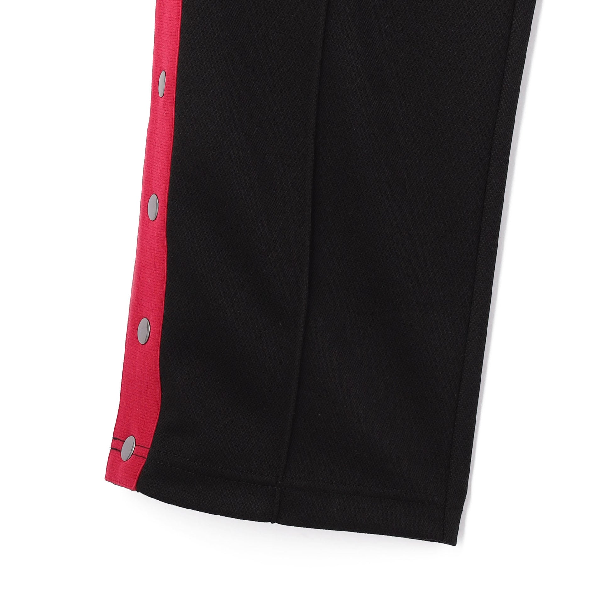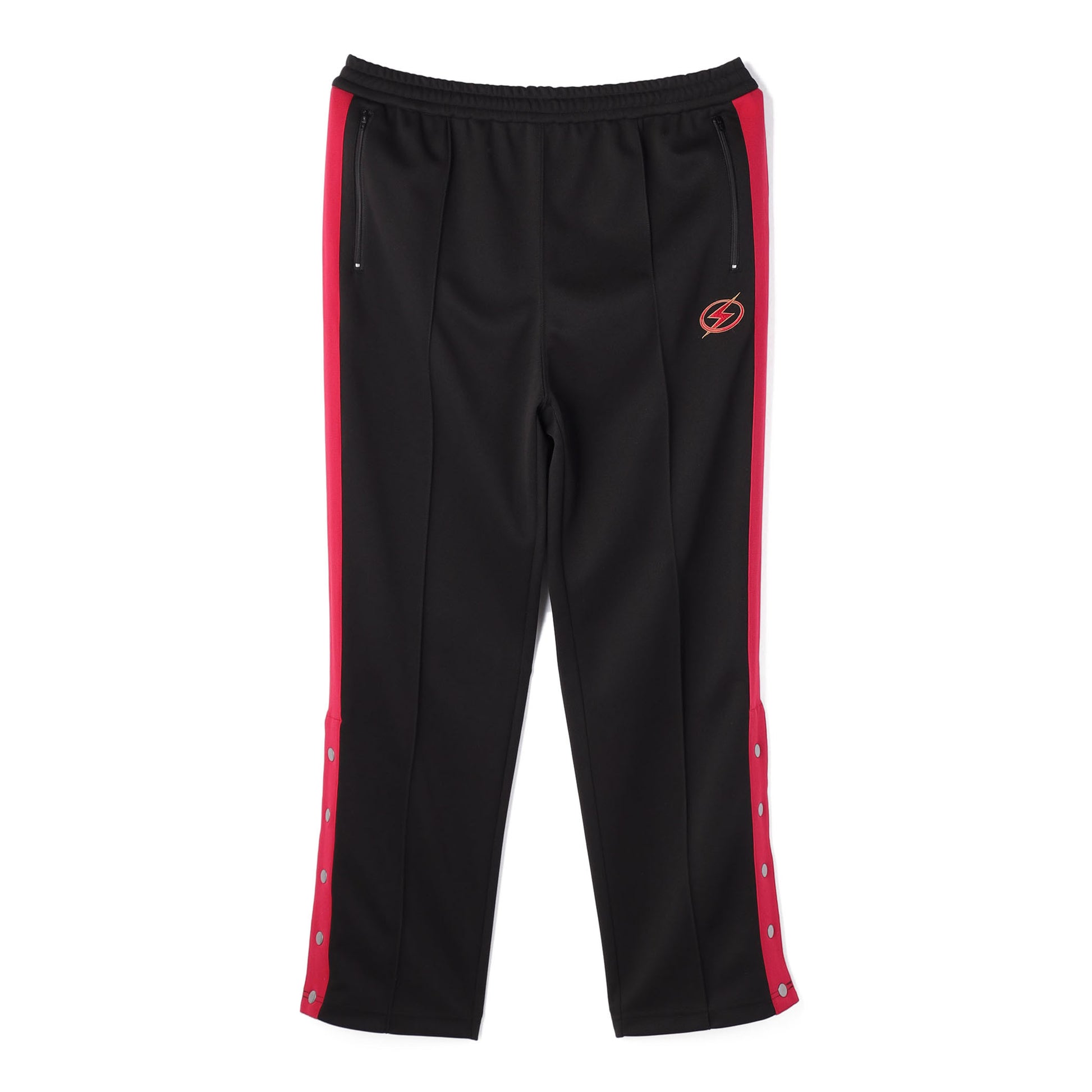 左腿の川崎ブレイブサンダースのロゴ刺繍がスタイリッシュなワンポイントのトラックパンツ。チームカラーのサイドラインもアクセント。ジップポケット付きで実用性抜群。デイリーからスポーツシーンまで様々な場面で活躍するアイテムです。