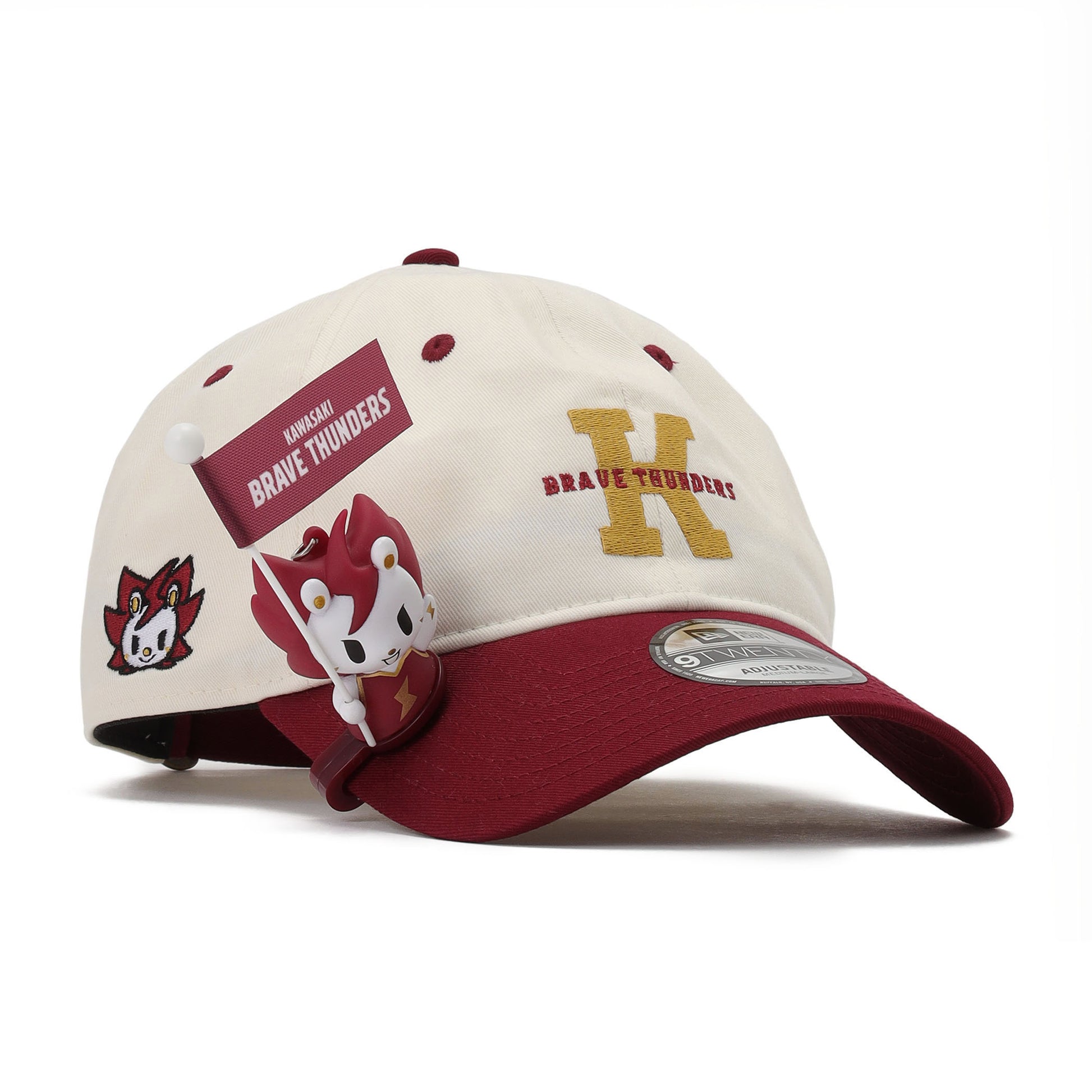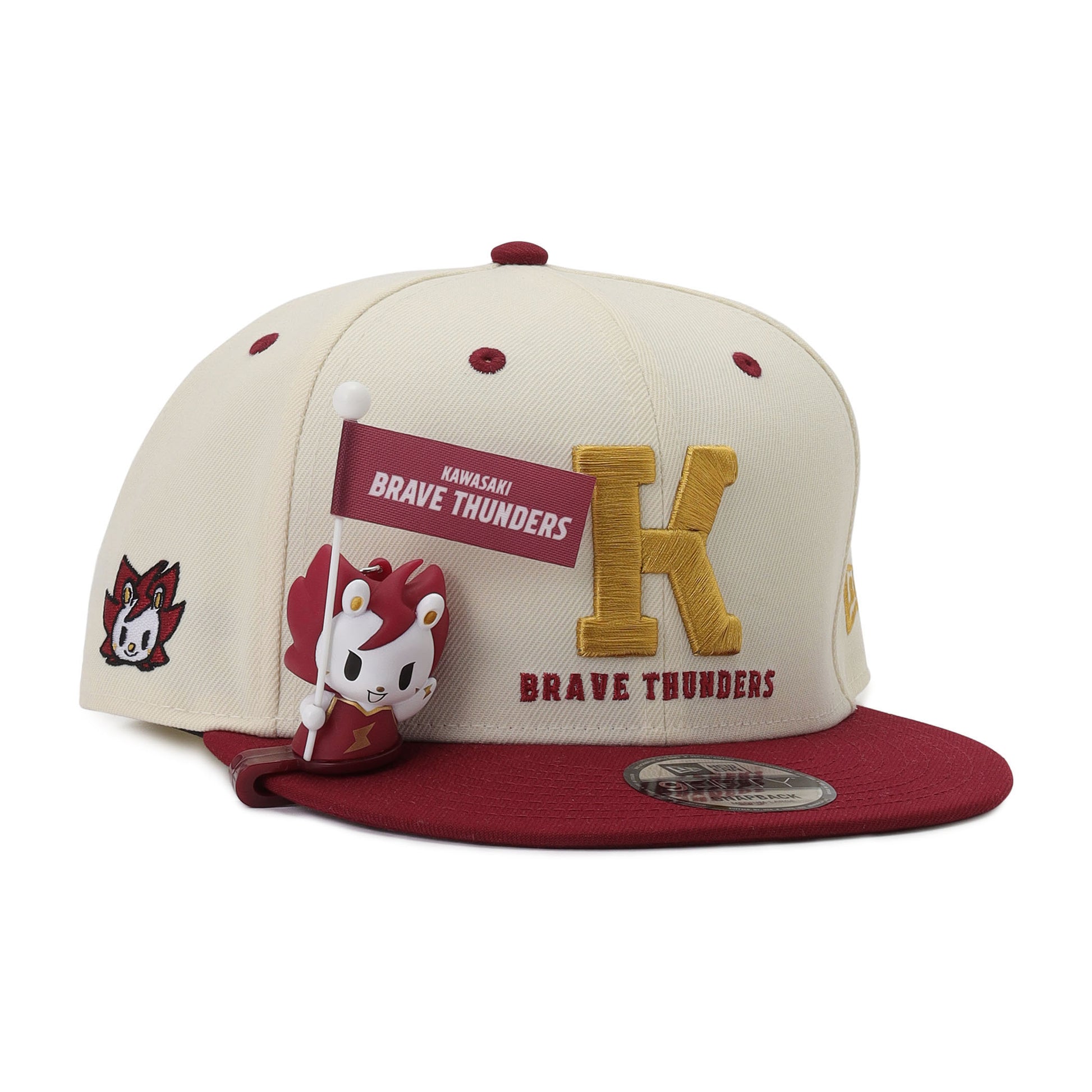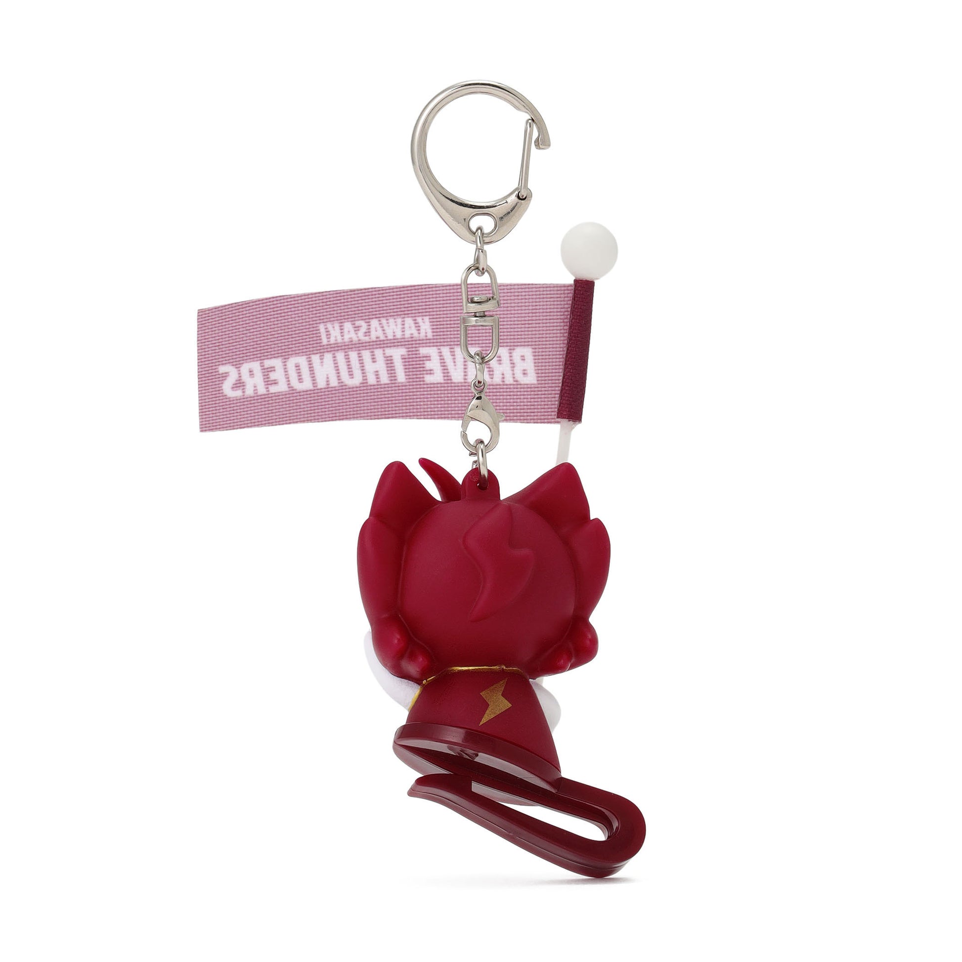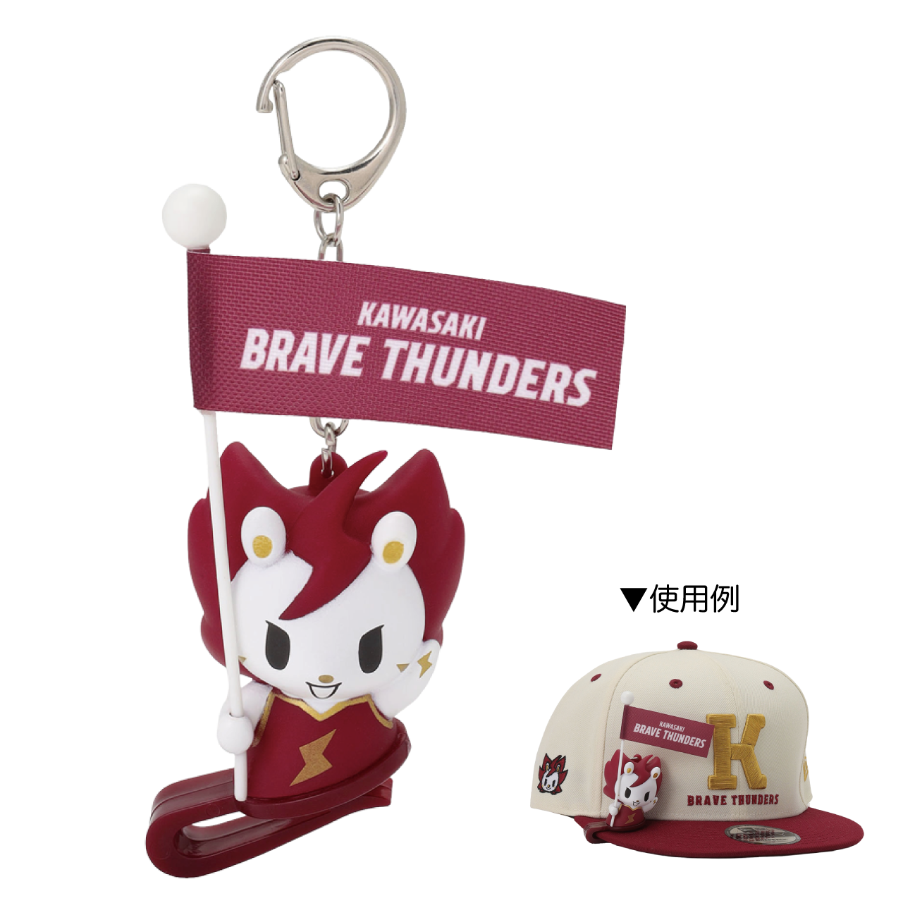 チームフラッグを手にするキャップマスコット。キャップのつば部分に簡単に装着できて応援のボルテージがアップします。立体的でボリュームも十分のフォルムが目を引き、コーディネートのワンポイントとしてもぴったりです。フックリングが付き、キーホルダーやバッグチャームとしてもお使いいただけます。