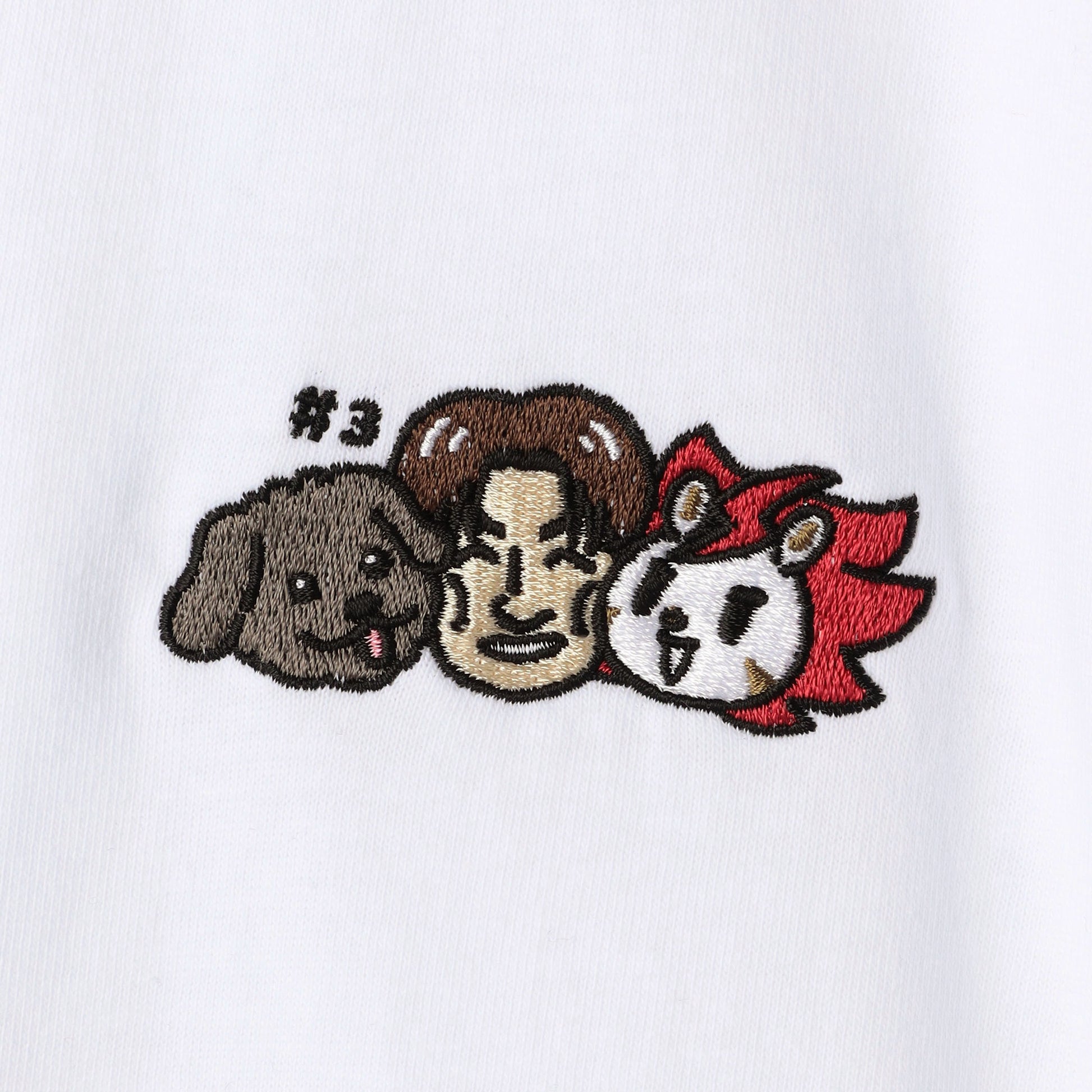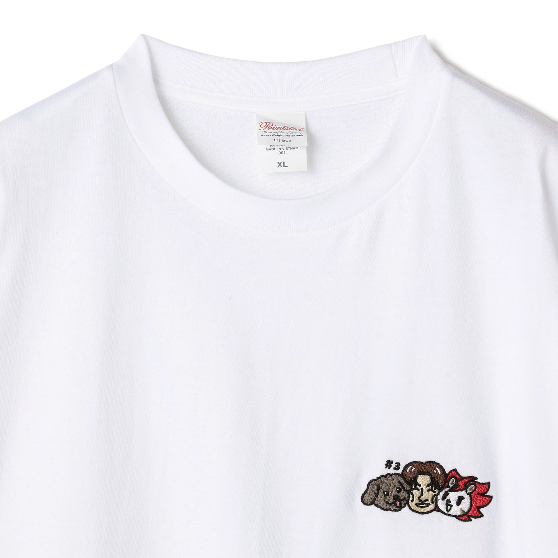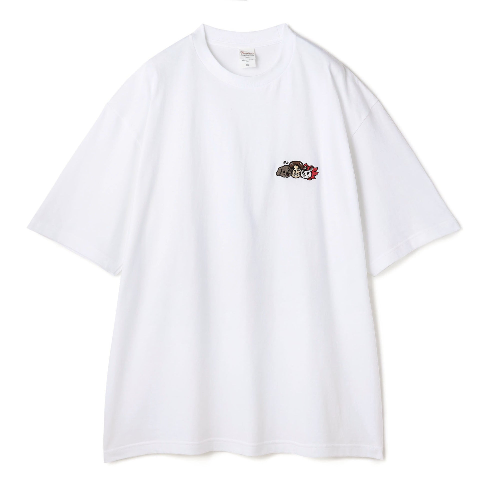 胸元にワンポイントをあしらった、クルーネックの無地Tシャツ。水野選手が愛犬ベルとロウルにほっぺをむぎゅーと押し付けられているような、仲がいい様子を描き下ろしたイラストの刺繍がとびきりキュートなデザインです。たっぷりとしたビッグシルエットで、トレンドのストリートスタイルが完成します。