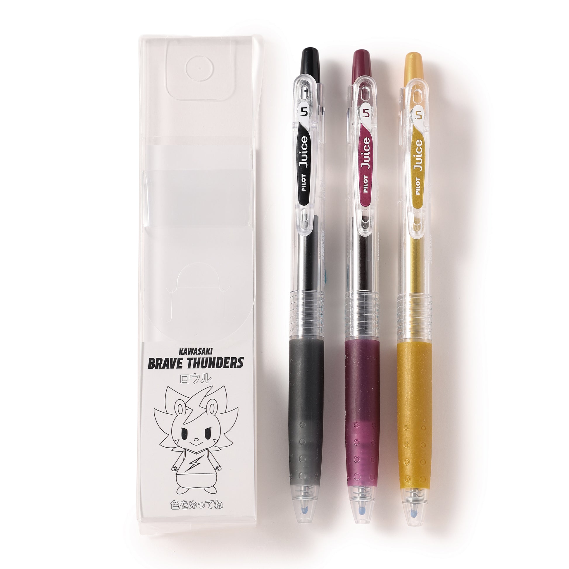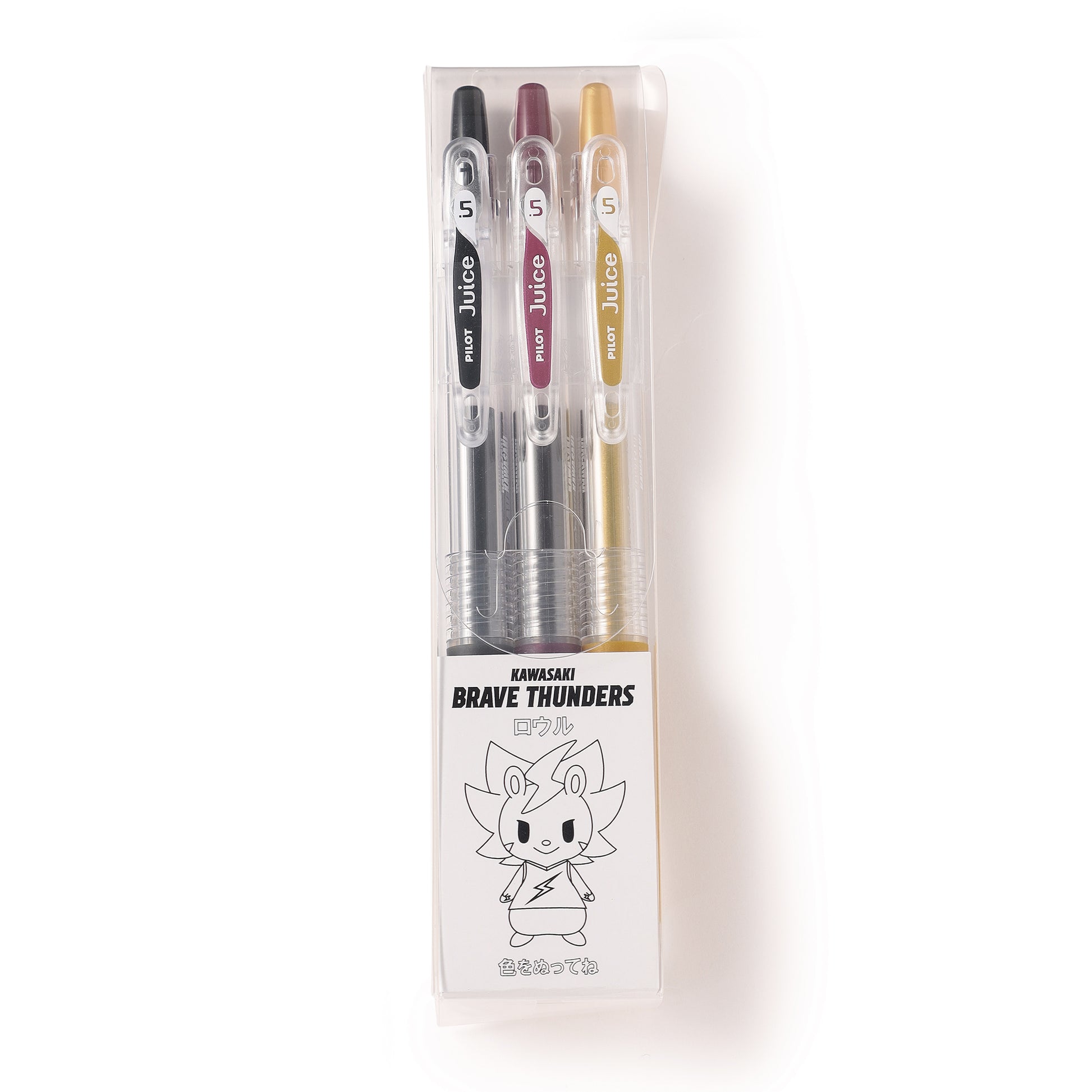 勉強にカードに事務に、カラフルに使い分けられるゲルインキボールペンの新定番。よく使う赤黒青のセットとは別に、ロウルのイラストカラーを書くことができるカラーのセットの2種類で販売。ロウルカラーには白黒の用紙が入っていますのでぜひ塗って遊んでください。